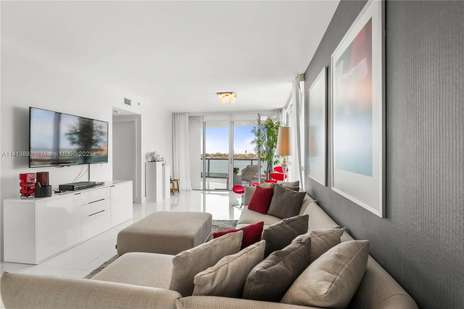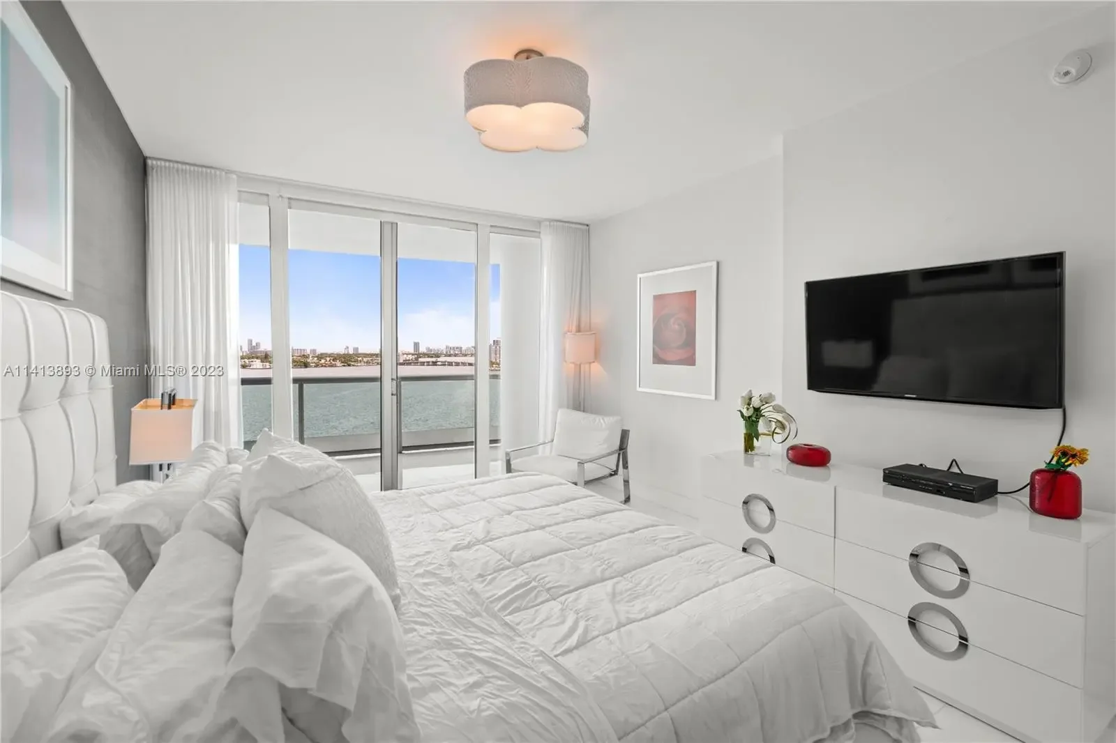 Enjoy a gorgeous water view turn-key 3/3 corner residence located at the luxury boutique building Cielo on the Bay. Featuring open floor plan with expansive sunrise and sunset terraces, private elevator vestibule, top of the line appliances, modern furniture, 2 parking spaces. Amenities at Cielo include concierge service, community room, fitness room, rooftop pool with jacuzzi, surrounded by water views. The building is located in the beautiful island of North Bay Village at a short distance to Bal Harbor, Miami Beach, Miami District. The building is pet friendly.