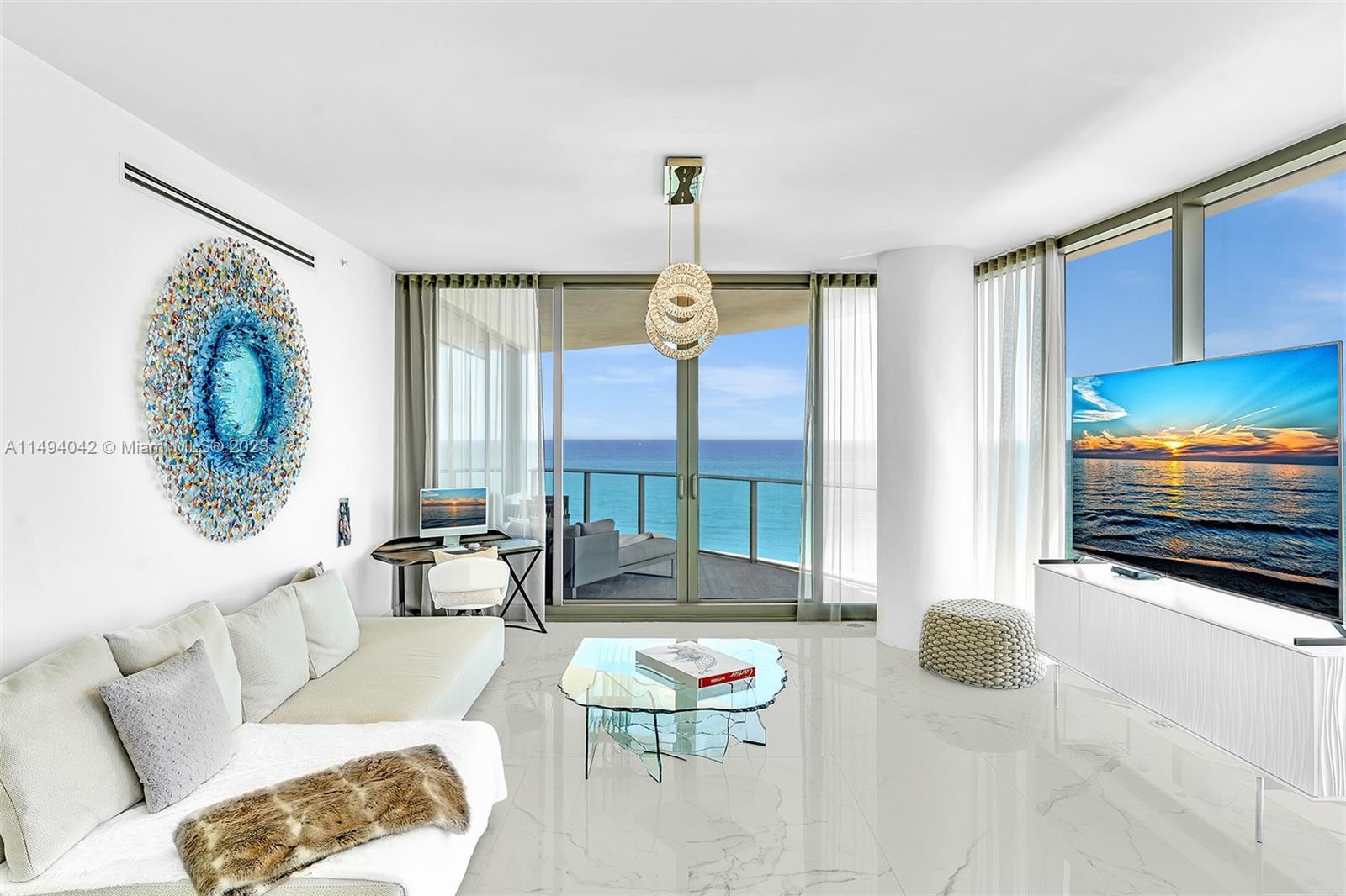 ~300° unobstructed views including the Atlantic Ocean, Intracoastal, Bay, and Miami Skyline. the Perfect Floor to See, Hear, Feel and Smell the Beautiful Perfect Beach and Ocean. This is the largest Layout in the building with Beautiful Panoramic views of the ocean, Bay, and Skyline from ALL balconies & Floor to Ceiling Windows throughout the Unit! Private Elevator fully furnished. Full Beach Service with two pools, restaurant, gym, spa, Pilates, sauna, and much more. Once in a lifetime opportunity. No expenses Spared. Must See. This unit is priced BELOW market value for quick sale. Owner has home and businesses out of state.