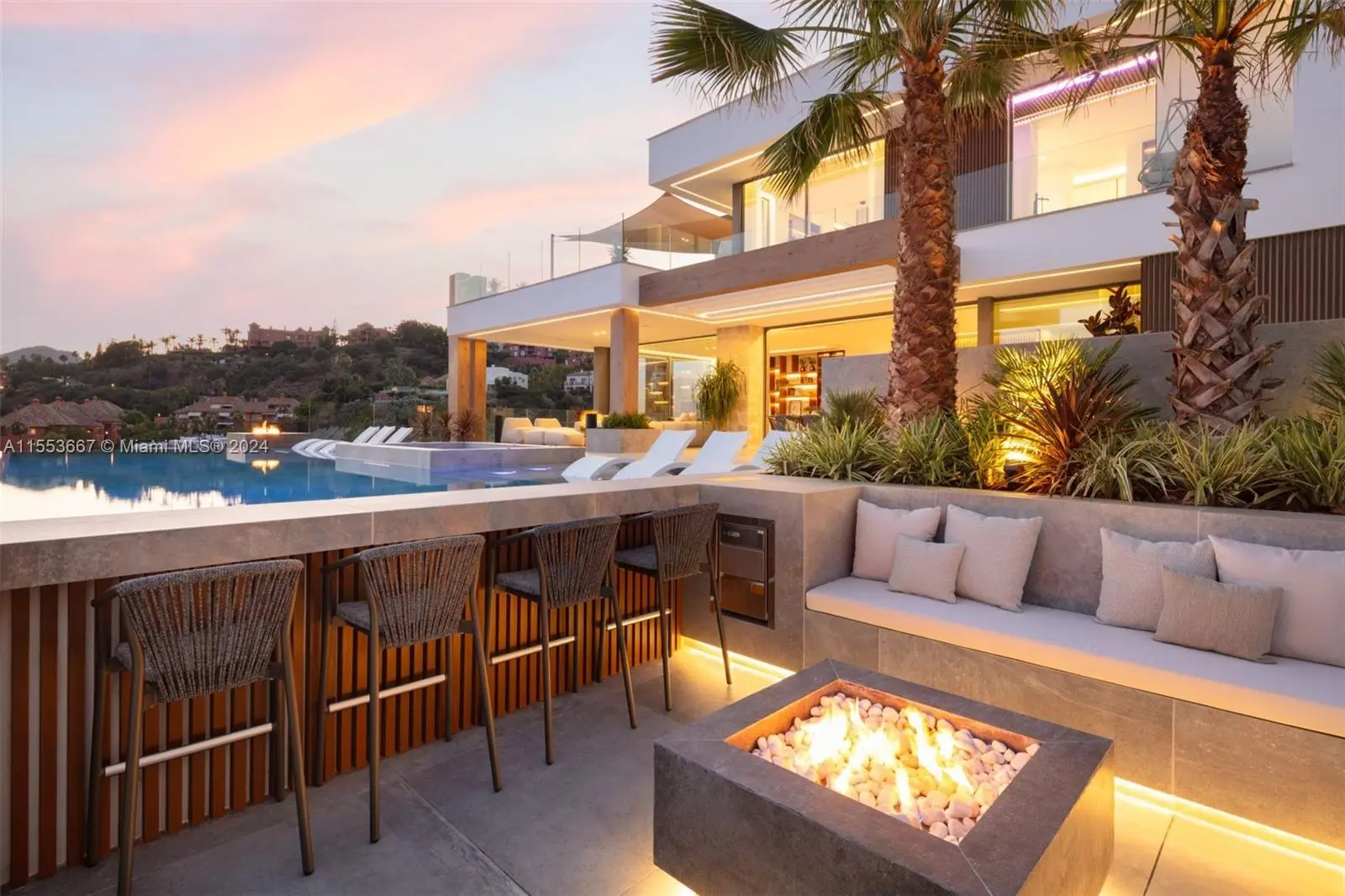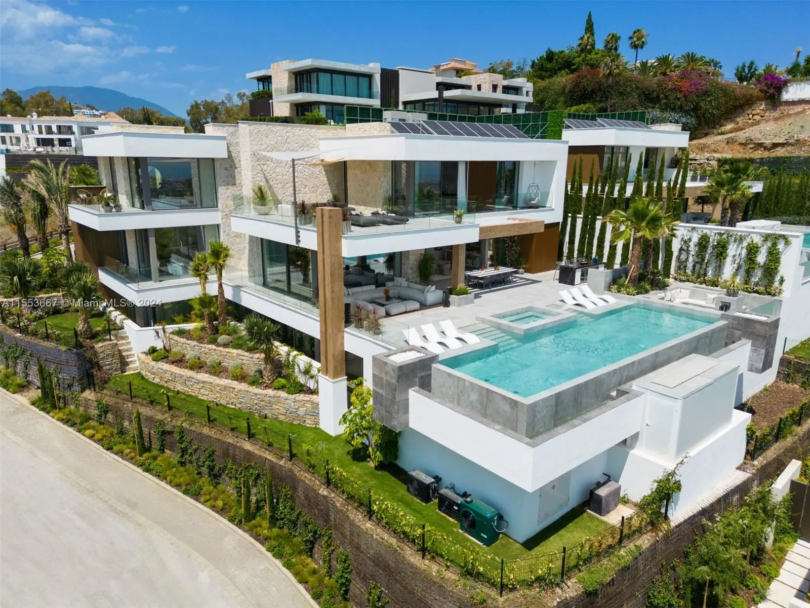 Property is located in Marbella, Spain. Nestled in La Quinta's prestigious gated community, Seamaster is a modern marvel of luxury living. Its panoramic views span from the Mediterranean to Africa, setting an awe-inspiring backdrop. Seamlessly blending indoor-outdoor spaces, it features a zero-edge pool, outdoor cinema, and gourmet kitchen. A lavish spa, gym, and entertainment room offer relaxation and leisure. With six elegant bedrooms, including a master suite boasting sea vistas and opulent amenities, Seamaster defines upscale living in Marbella.