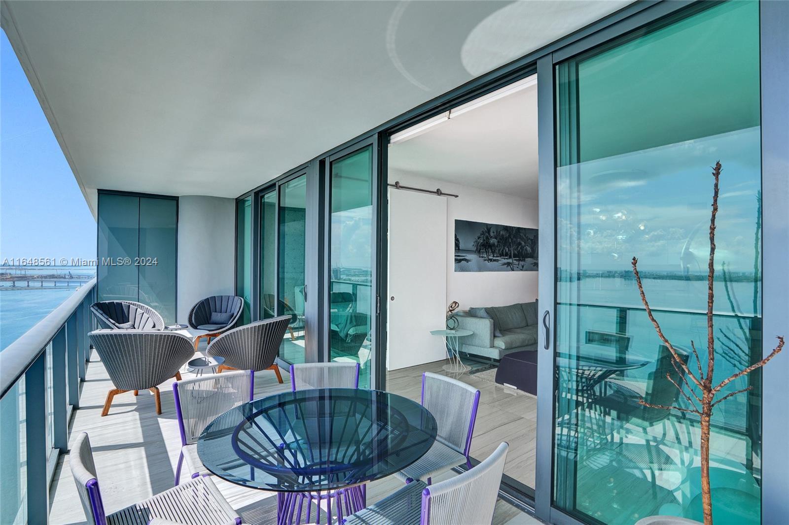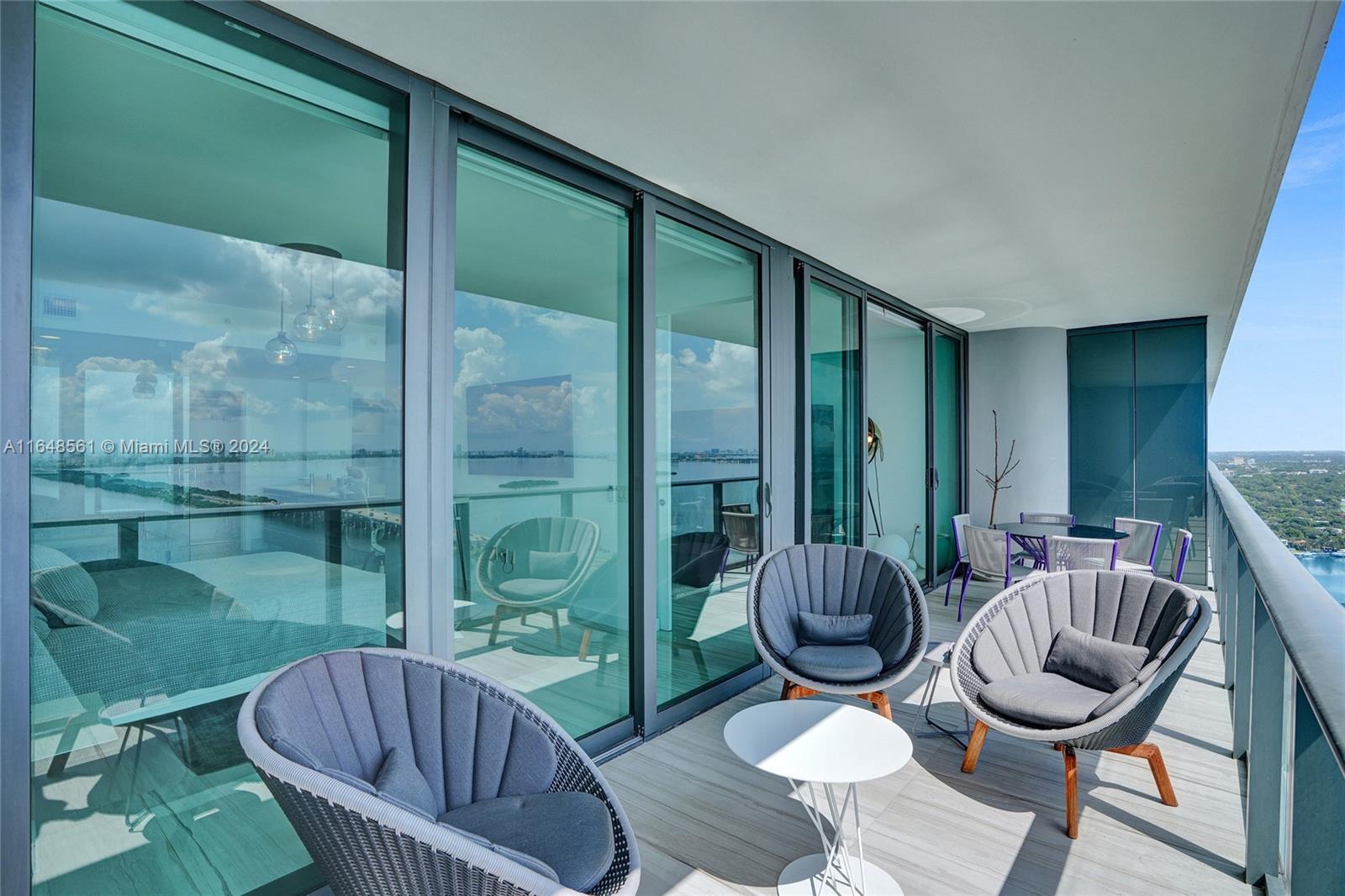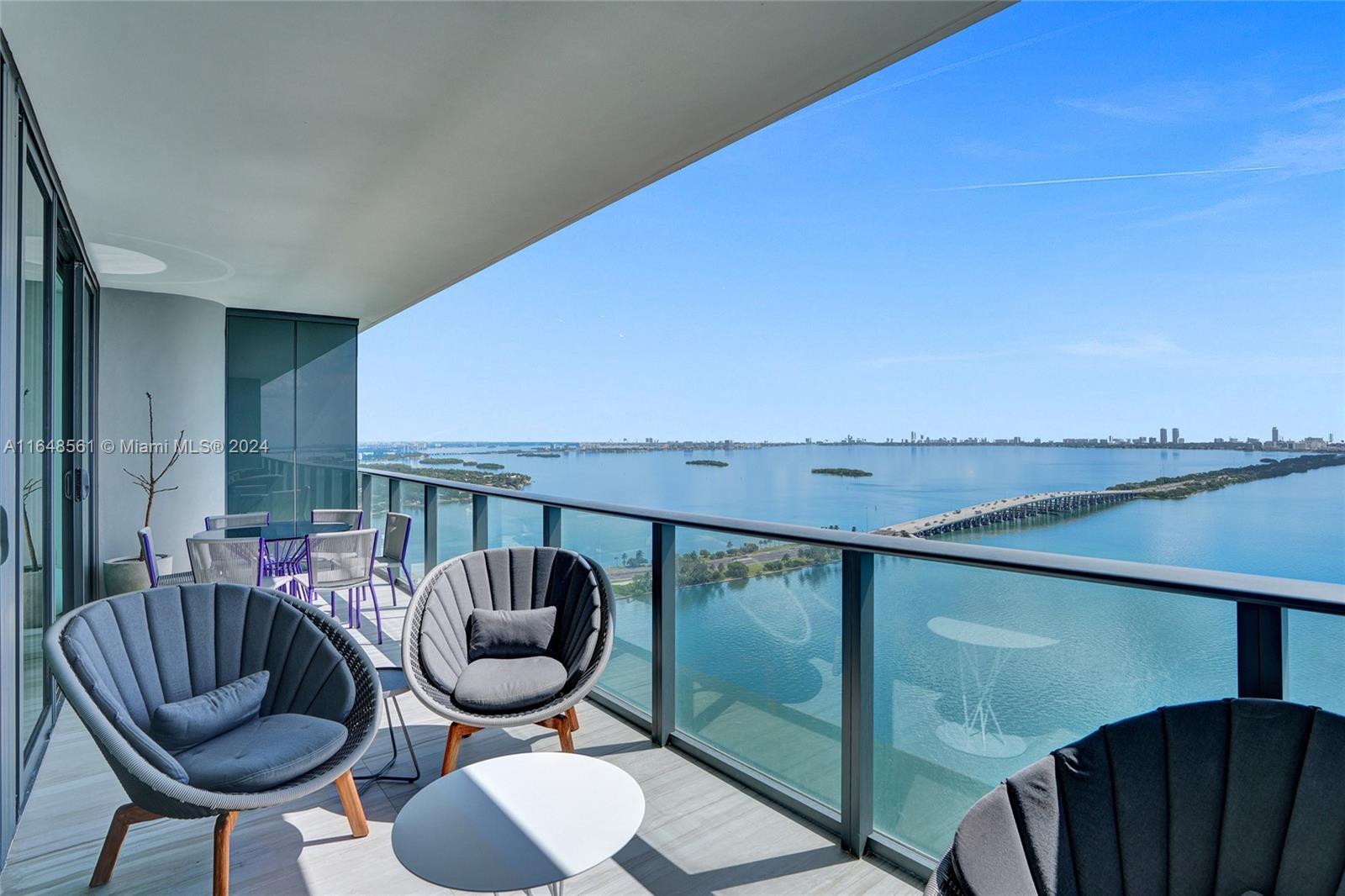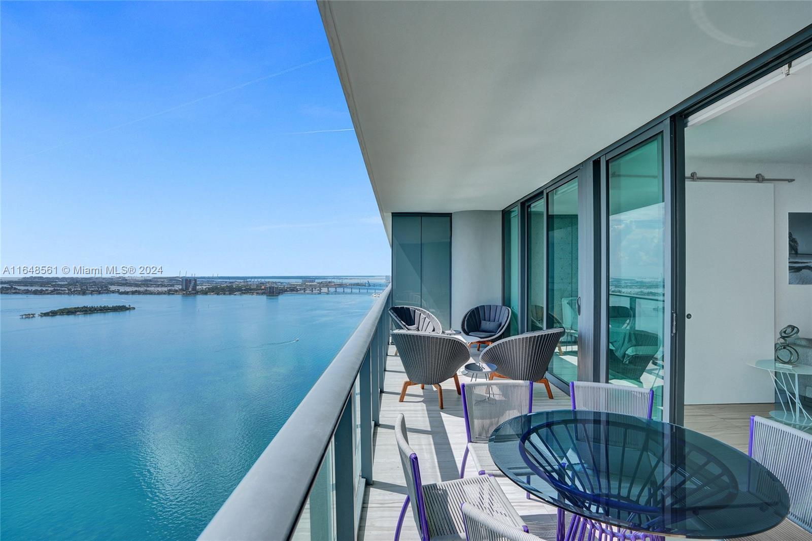Incredible views on the water. Convenient and smart floorplan with 2 gigantic balconies. Private elevator. Open kitchen. Spacious living-room. Large balcony with water views and dining table and lounge area. Large Master Bedroom. Luminous Master Bathroom. 2 separate sinks. Large equipped Master Closet. Convenient Den next to 2 other bedrooms with their own bathrooms. Half-bathroom for visitors and private foyer. Luxury furniture negotiable. One Paraiso is centrally located with quick access to Wynwood, Design District, Airport, Miami Beach, Downtown and Brickell. All luxury amenities. Ground level adult pool, 2 pools, hot pools, cabanas, 2 tennis courts and BBQ area. Gym, spa, massage rooms, party room, business center, billiard room, screening room, child play room