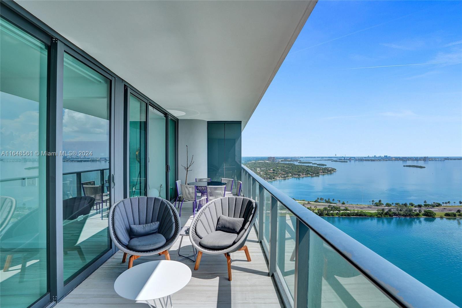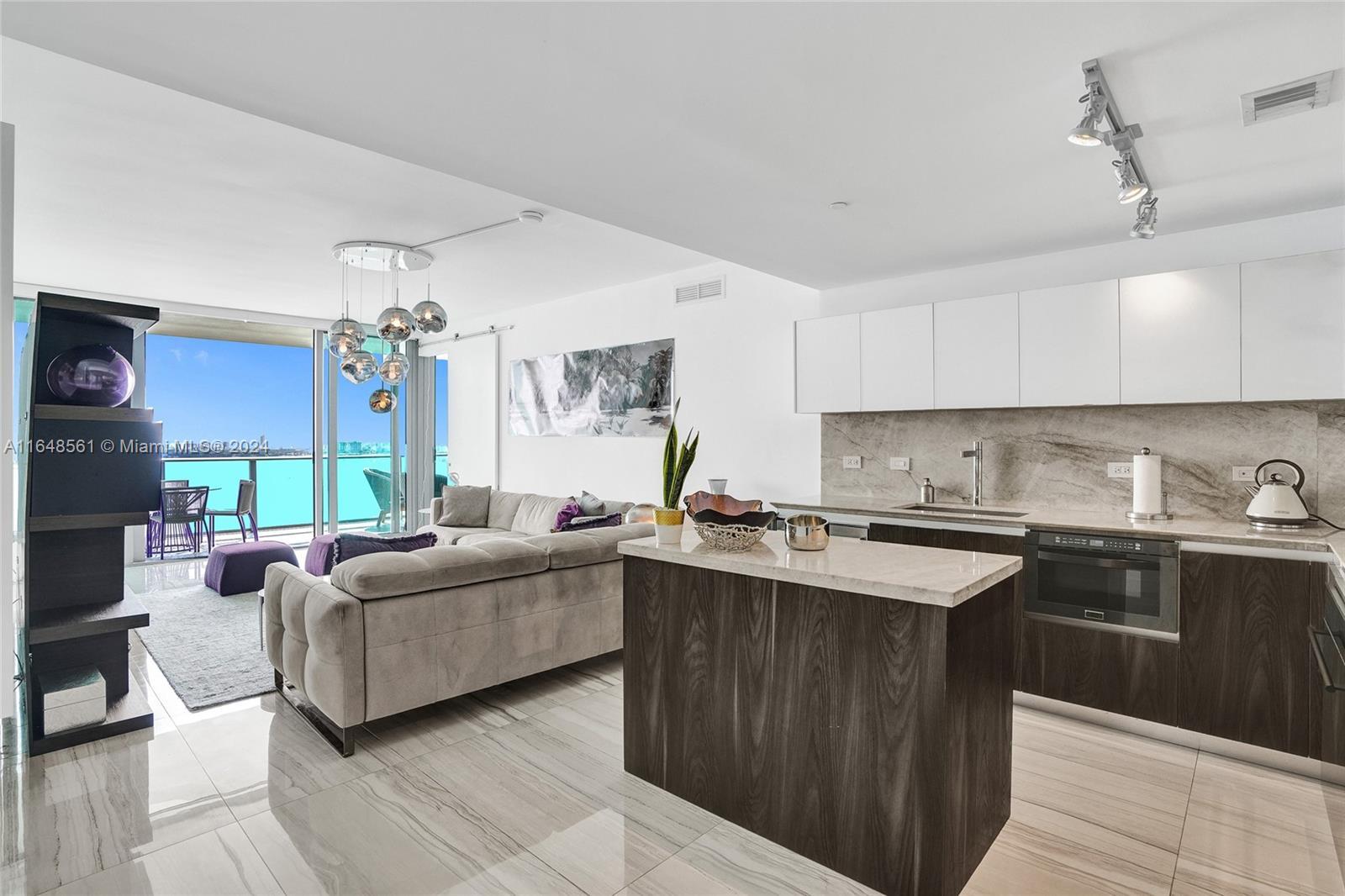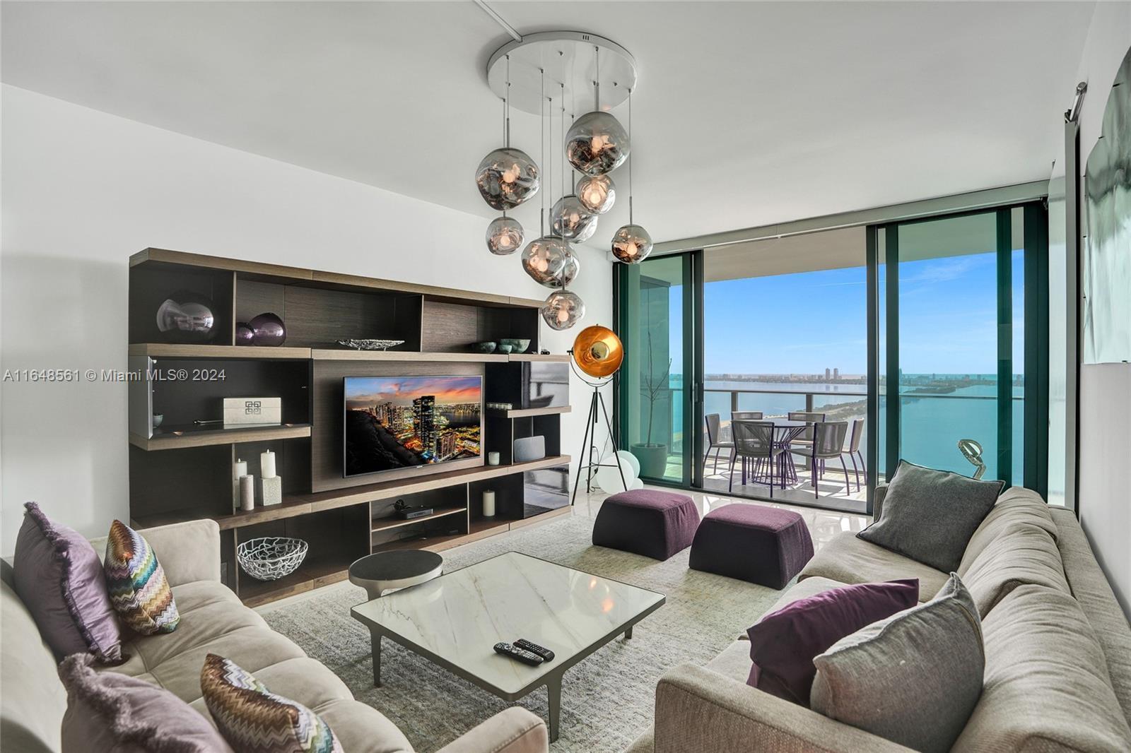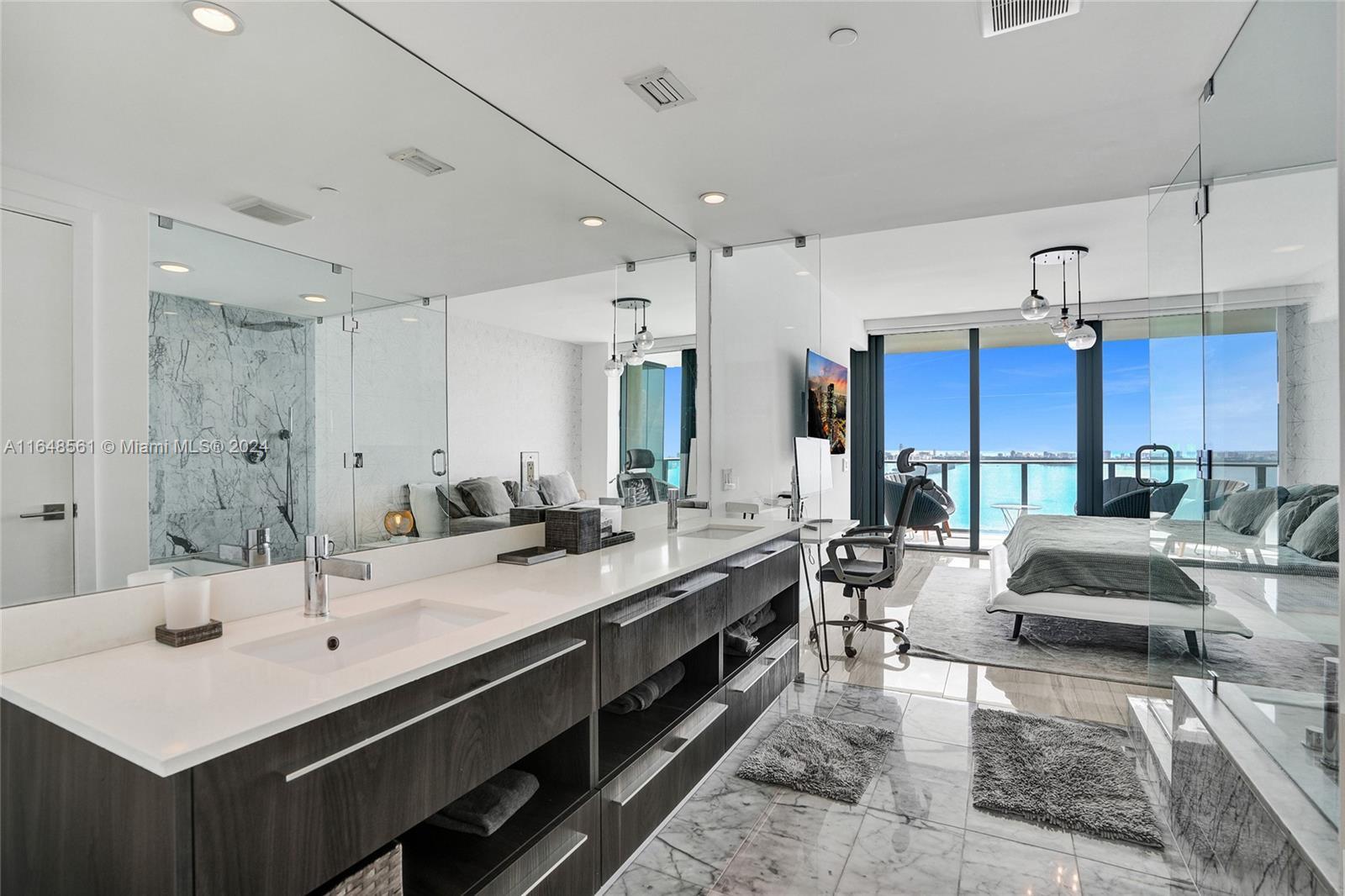 Incredible views on the water. Convenient and smart floorplan with 2 gigantic balconies. Private elevator. Open kitchen. Spacious living-room. Large balcony with water views and dining table and lounge area. Large Master Bedroom. Luminous Master Bathroom. 2 separate sinks. Large equipped Master Closet. Convenient Den next to 2 other bedrooms with their own bathrooms. Half-bathroom for visitors and private foyer. Luxury furniture negotiable. One Paraiso is centrally located with quick access to Wynwood, Design District, Airport, Miami Beach, Downtown and Brickell. All luxury amenities. Ground level adult pool, 2 pools, hot pools, cabanas, 2 tennis courts and BBQ area. Gym, spa, massage rooms, party room, business center, billiard room, screening room, child play room