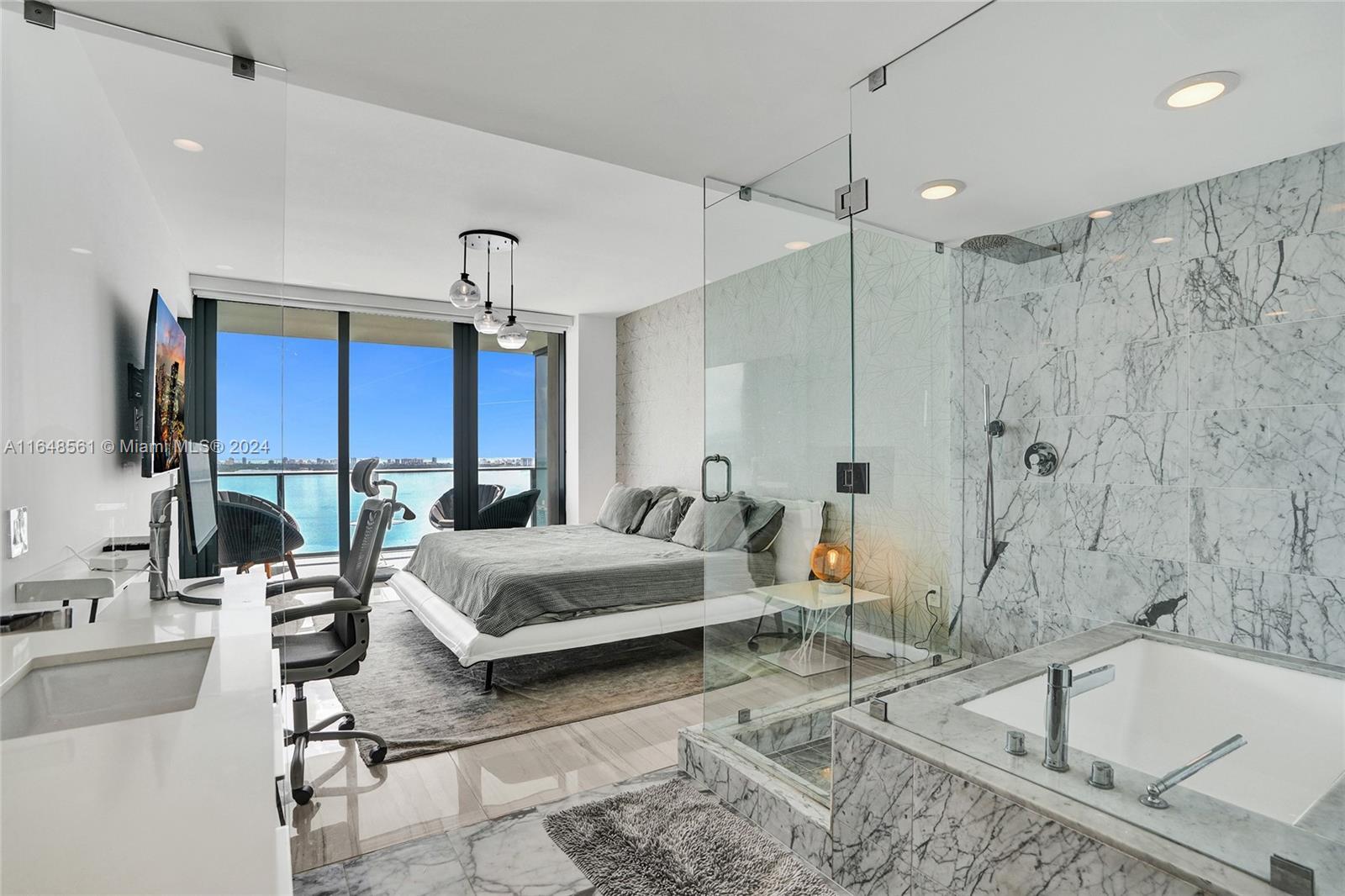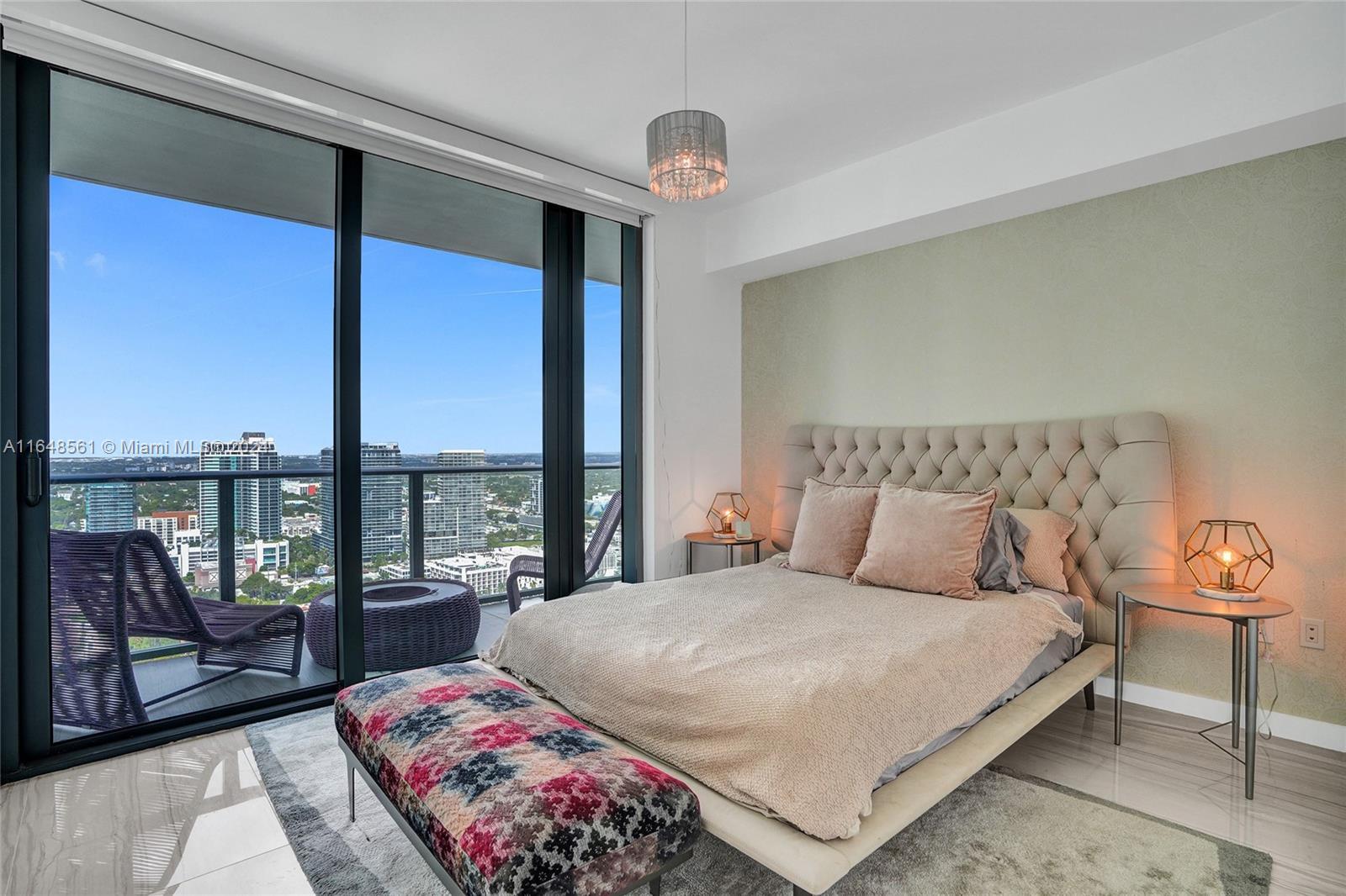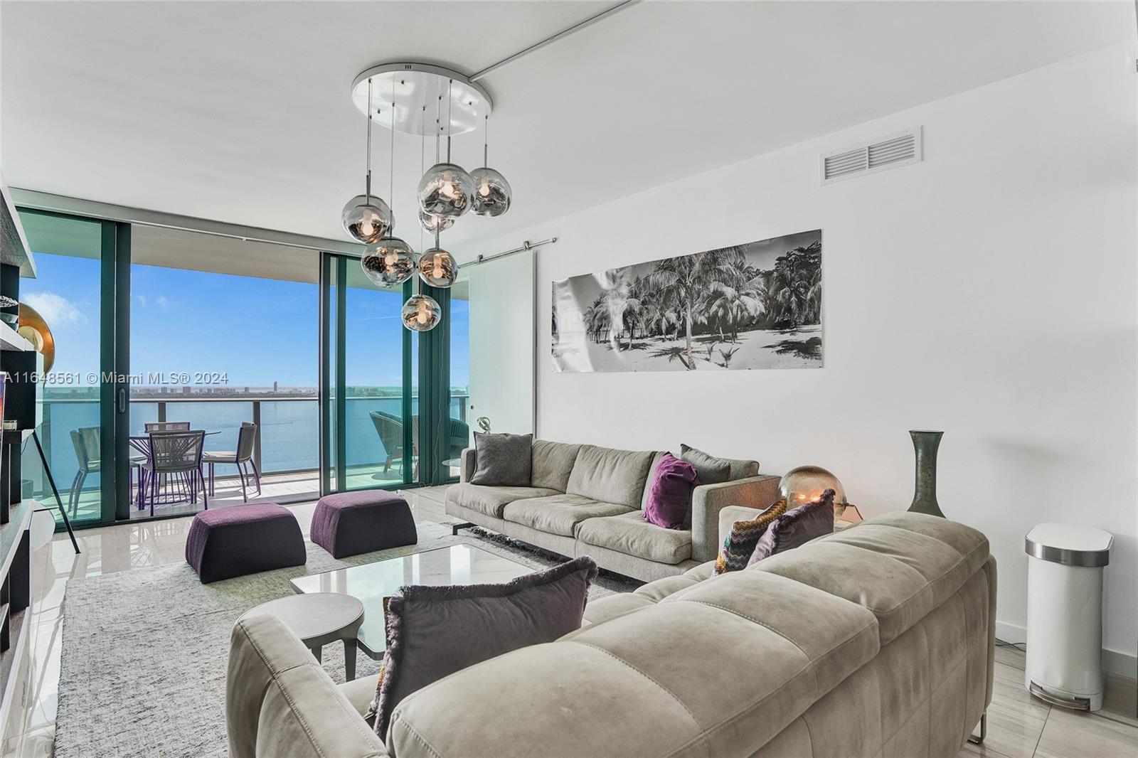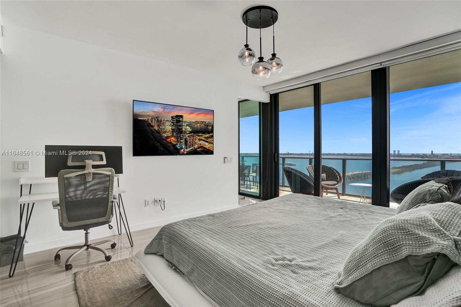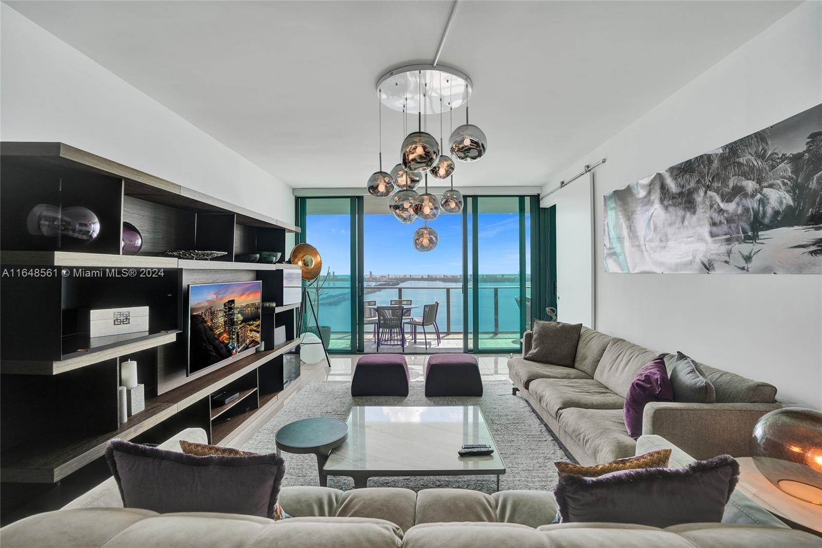Incredible views on the water. Convenient and smart floorplan with 2 gigantic balconies. Private elevator. Open kitchen. Spacious living-room. Large balcony with water views and dining table and lounge area. Large Master Bedroom. Luminous Master Bathroom. 2 separate sinks. Large equipped Master Closet. Convenient Den next to 2 other bedrooms with their own bathrooms. Half-bathroom for visitors and private foyer. Luxury furniture negotiable. One Paraiso is centrally located with quick access to Wynwood, Design District, Airport, Miami Beach, Downtown and Brickell. All luxury amenities. Ground level adult pool, 2 pools, hot pools, cabanas, 2 tennis courts and BBQ area. Gym, spa, massage rooms, party room, business center, billiard room, screening room, child play room