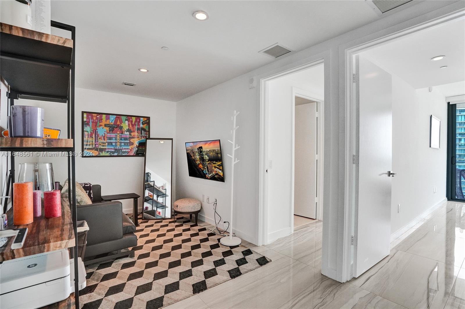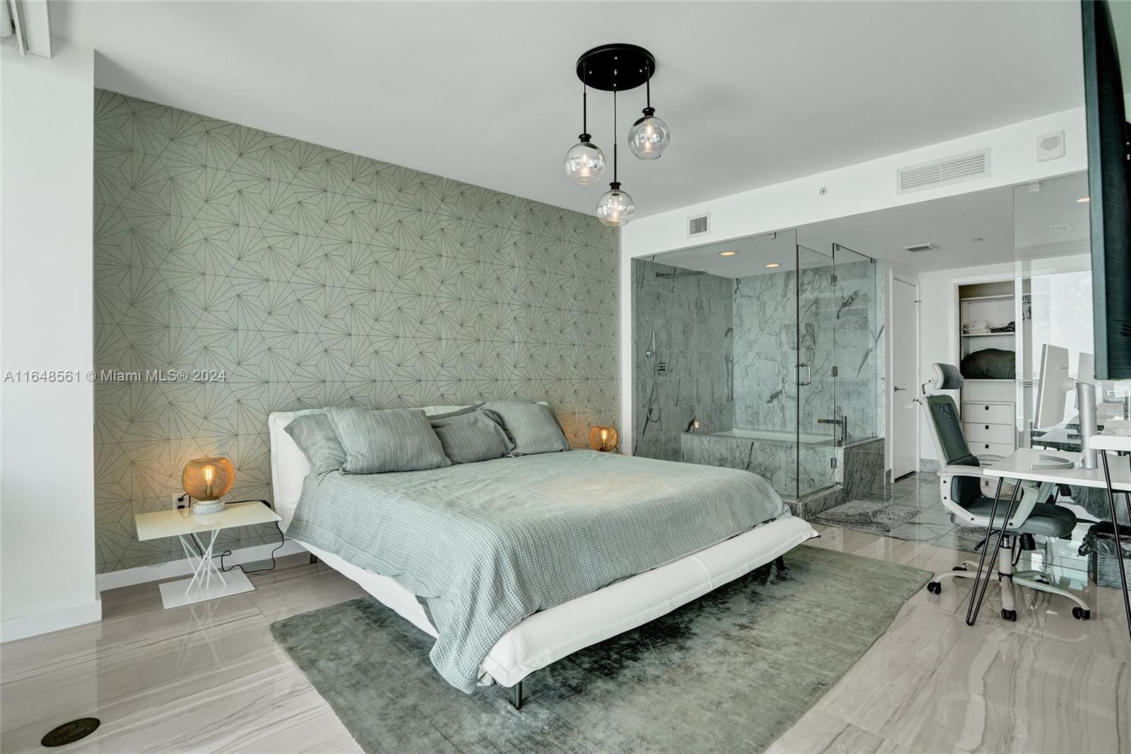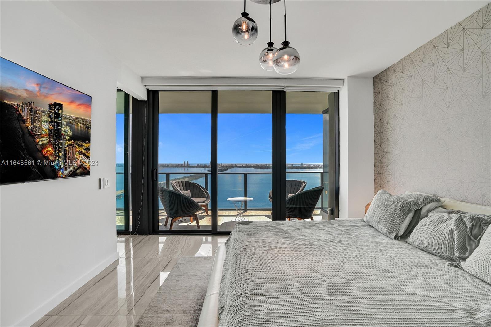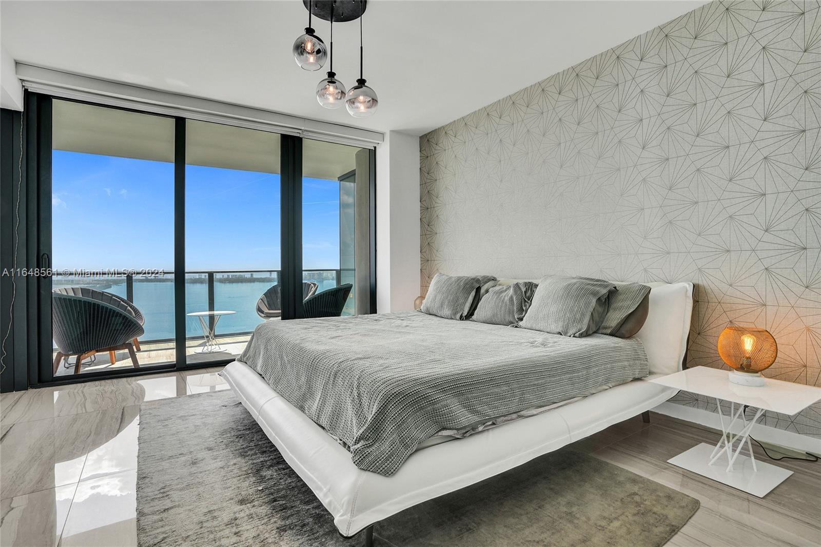 Incredible views on the water. Convenient and smart floorplan with 2 gigantic balconies. Private elevator. Open kitchen. Spacious living-room. Large balcony with water views and dining table and lounge area. Large Master Bedroom. Luminous Master Bathroom. 2 separate sinks. Large equipped Master Closet. Convenient Den next to 2 other bedrooms with their own bathrooms. Half-bathroom for visitors and private foyer. Luxury furniture negotiable. One Paraiso is centrally located with quick access to Wynwood, Design District, Airport, Miami Beach, Downtown and Brickell. All luxury amenities. Ground level adult pool, 2 pools, hot pools, cabanas, 2 tennis courts and BBQ area. Gym, spa, massage rooms, party room, business center, billiard room, screening room, child play room