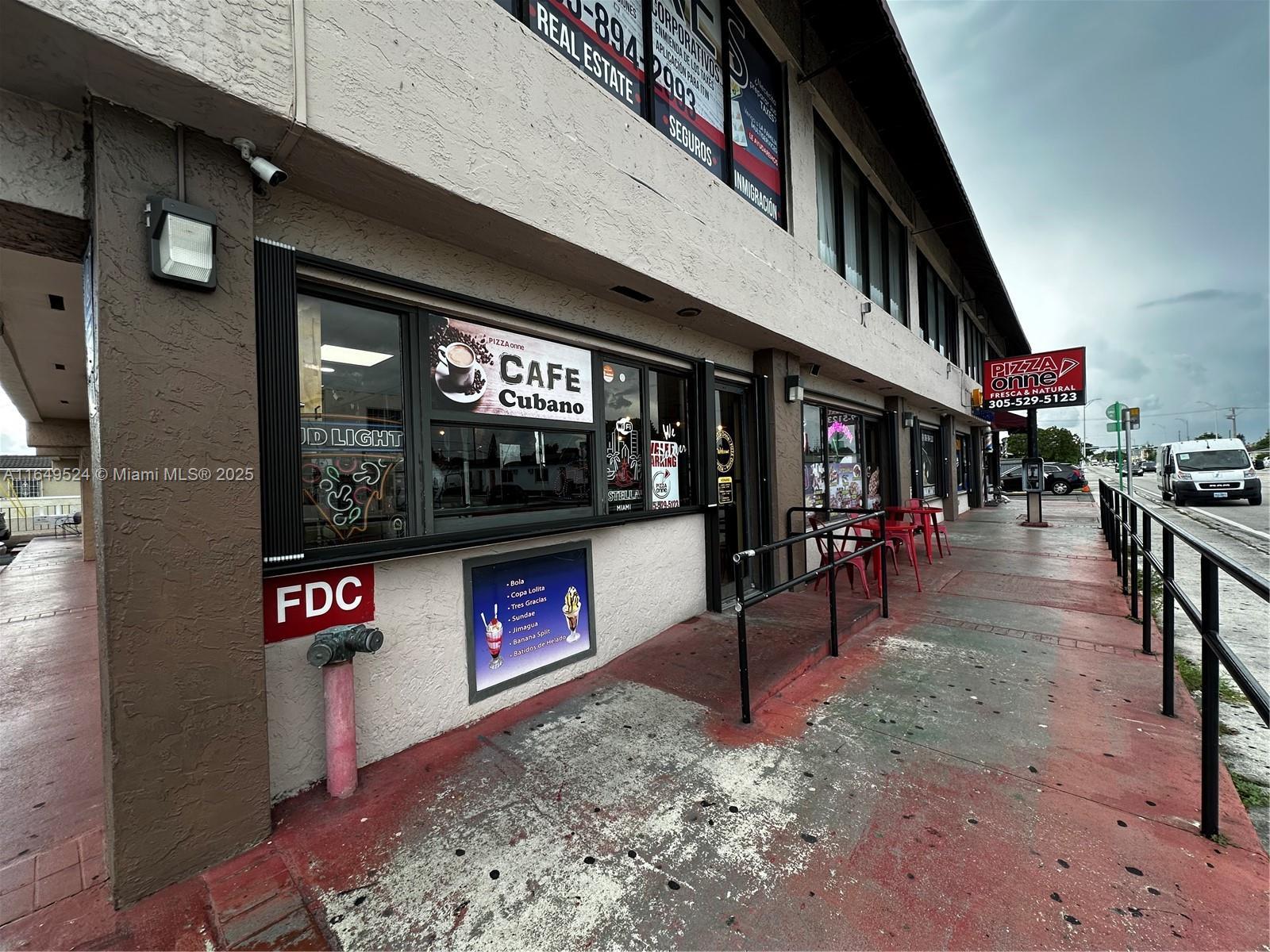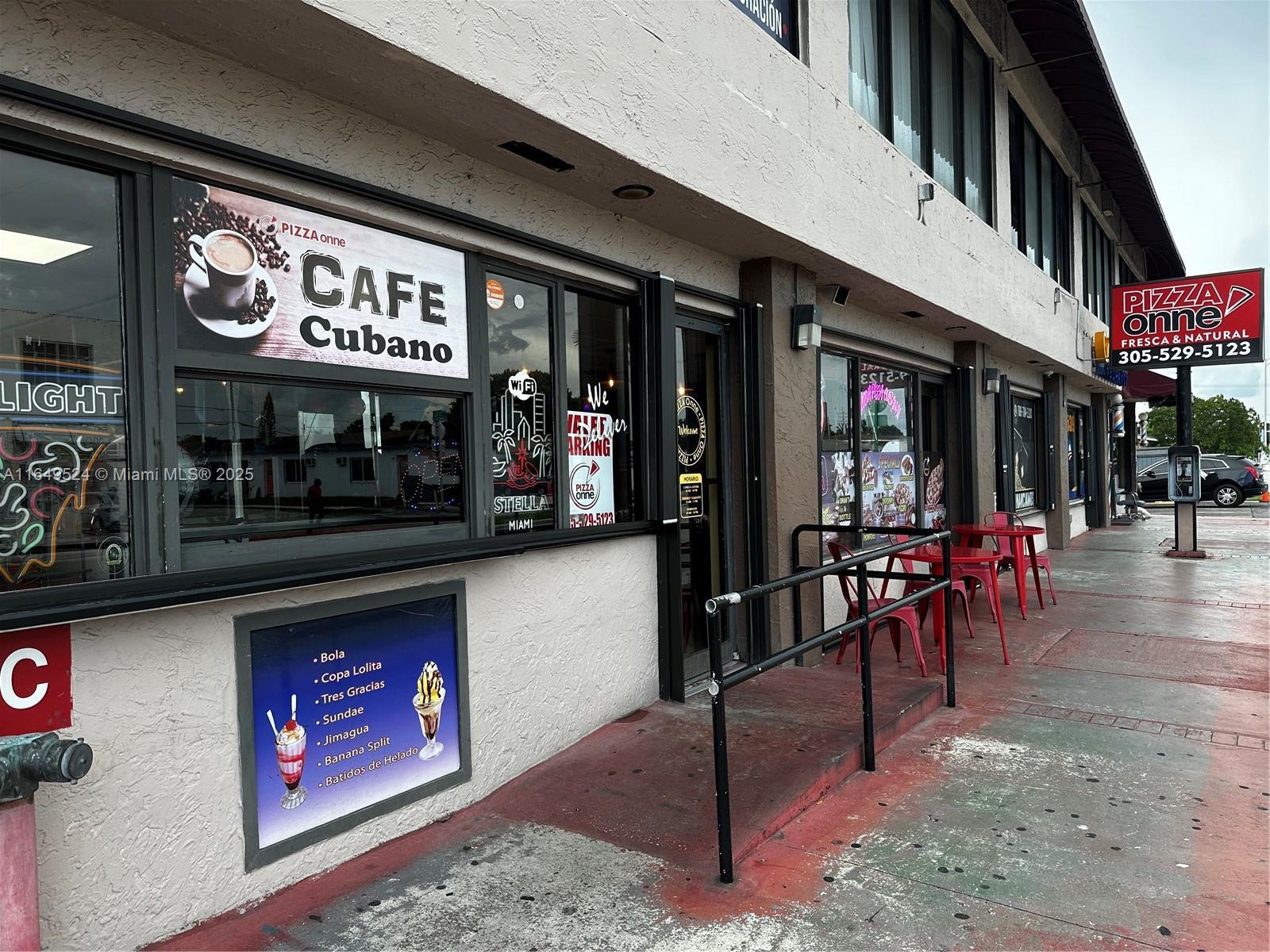Pizzeria/Cuban Restaurant on West Flagler. Remodeled dining room and bar, Beer & Wine license, great exposure on amin street. Low rent