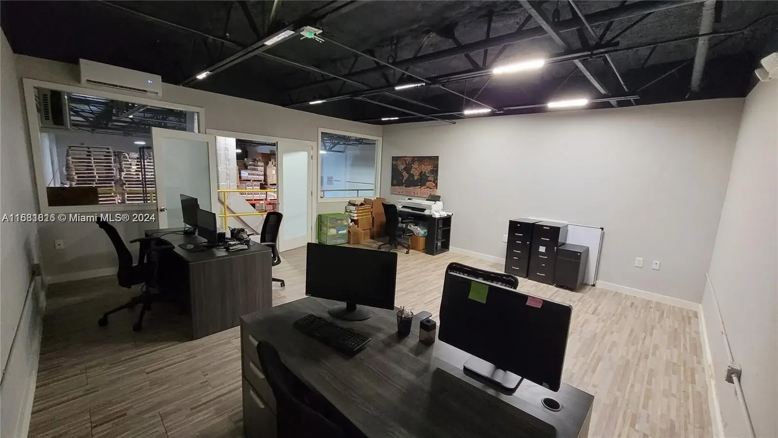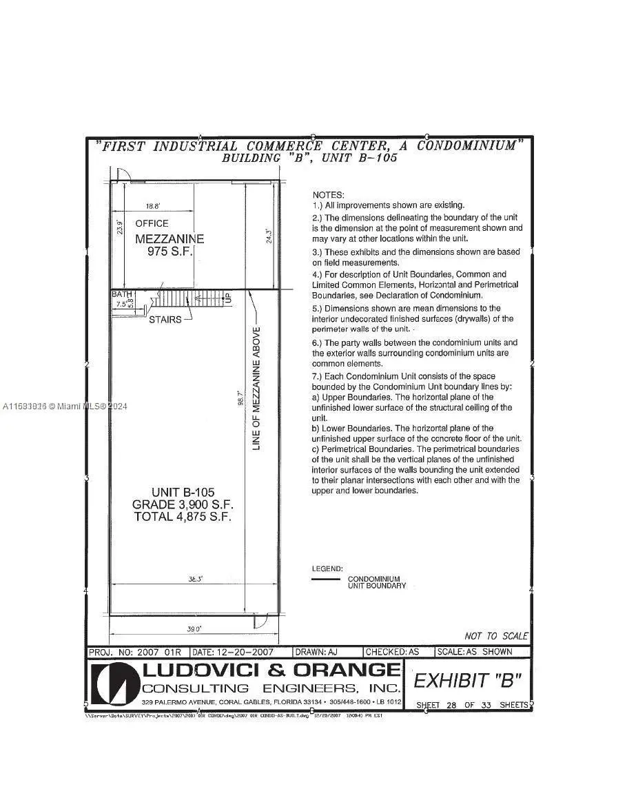 4,875 Total SF Tenant occupied 3,412 SF Warehouse Area, 488 SF Open Office Area on ground floor, 975 SF additional office in Mezzanine area (Break-room/Conference Room) and Executive Office. 20' Clear Ceiling Height in warehouse area, One (1) 9'x10' Front Loading Street Level Door, Seven (7) parking spaces in front of unit. Class development, Fully Secured, Gated Truck Court, Common Area Scissor-Lift for Dock High Shipments, Hurricane impact-resistant glass, Type-IV sprinkler protection, M-1 zoning City of Medley.1st Floor -B-105SIZE 4,875 SFTERM The IU-1 Industrial, Light Manufacturing zoning district allows the following:Wholesale distribution facilities,Warehousing,Storage facilities,Offices.!!Low HOA dues,!!