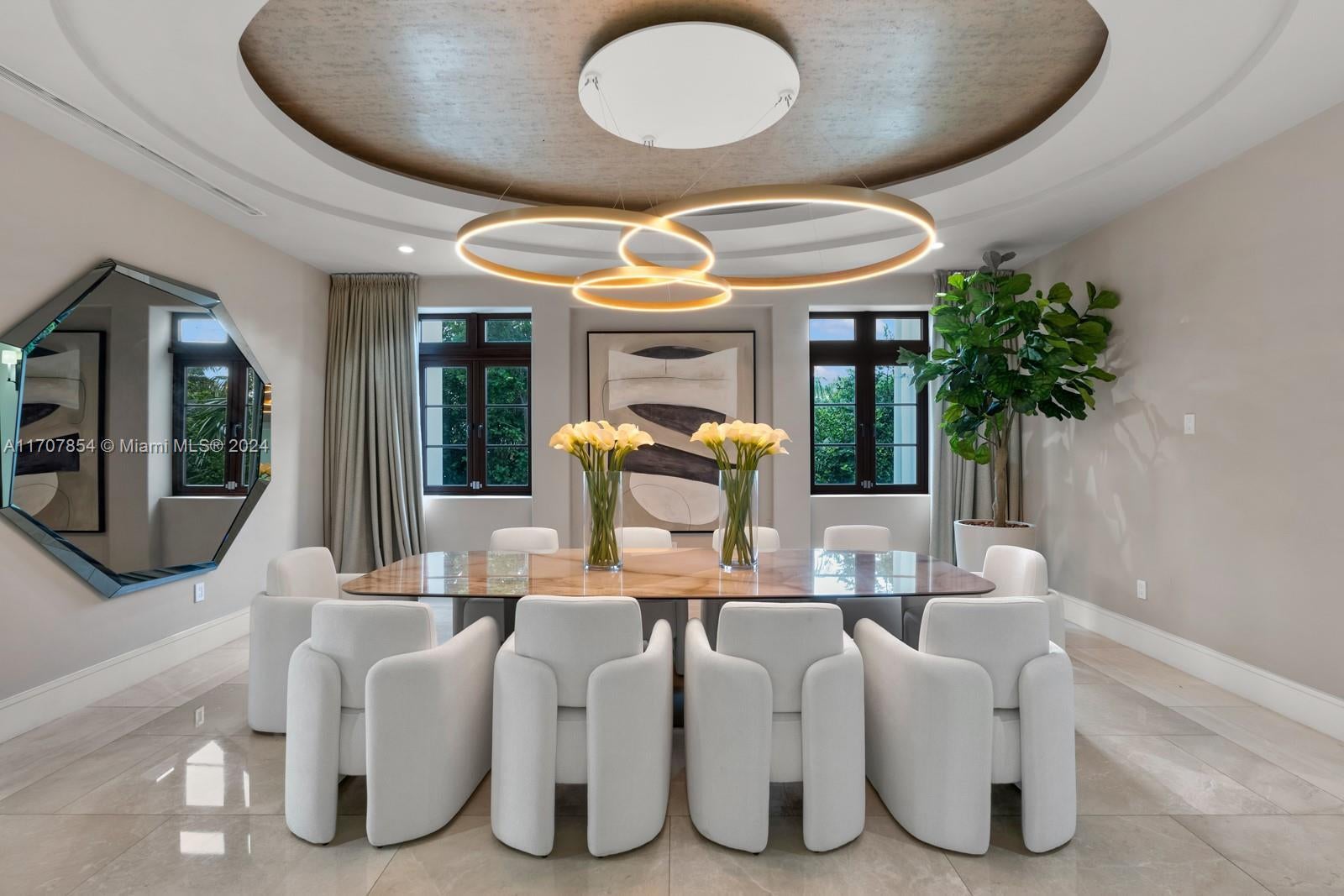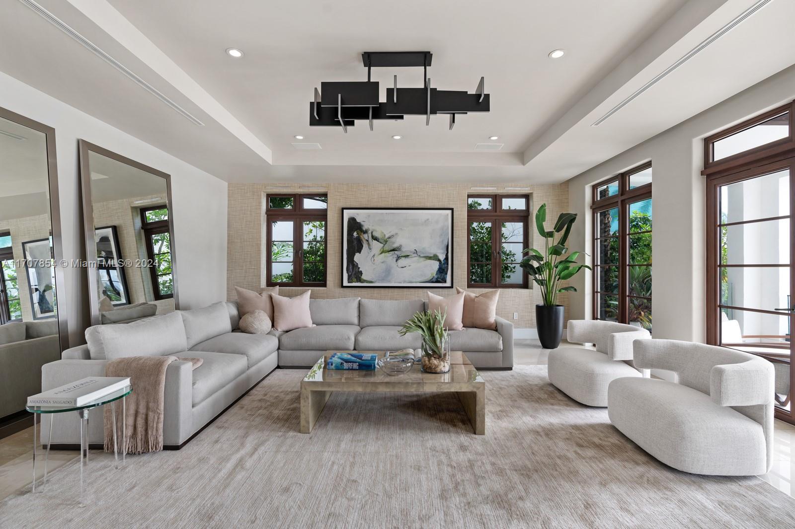 Experience luxury living in this exquisite 3-story waterfront estate, offering 100’ of prime water frontage on the prestigious, guard-gated Palm Island. Boasting 8 bedrooms, 9.5 baths, and a 4-car garage, this home offers ultimate comfort and style. Enjoy breathtaking views of the Miami skyline and beautiful sunsets from the expansive 5,000 SF rooftop terrace and multiple inviting living spaces. The ground level includes a spacious media room and game area while the outdoor space features a stunning pool, summer kitchen and a private dock that accommodates yachts up to 90' as well as a boat lift and floating jet ski dock. The home is complete with a private elevator and staff quarters. This is the epitome of elegance, exclusivity, and Miami’s vibrant waterfront lifestyle