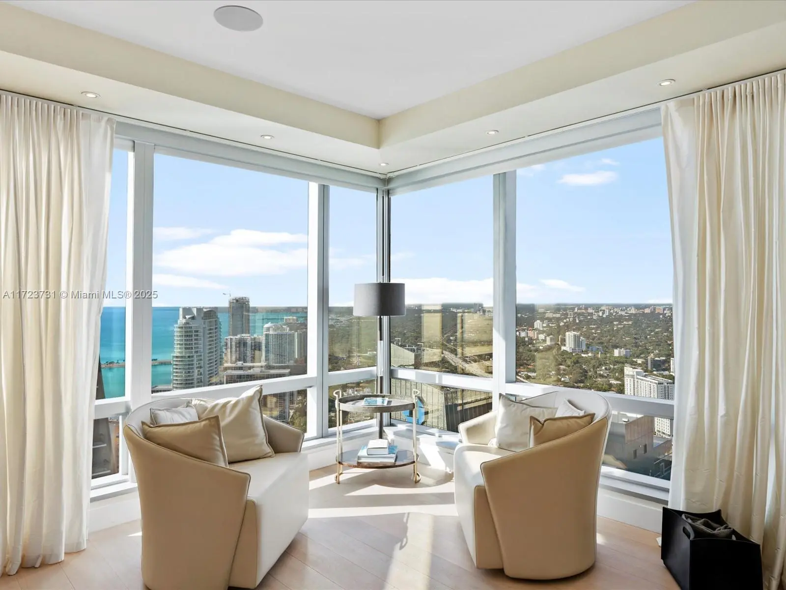 Step inside the only available B+C line at the exclusive Four Seasons Residences. This spectacularly combined residence sits 52 stories in the sky in the heart of Brickell Ave. Masterfully combined it features marble and wood flooring, and eat-in kitchen with Miele, Viking and Sub-Zero appliances. Tasteful Interiors designed by Marisol Pinto, and featuring Roche Bobois, Artefacto and Fendi furnishings. Entertain in style in the formal dining room, living room and Media Room with Bar while enjoying spectacular skyline views of Brickell Avenue and south-west Miami through Biscayne Bay sparkling water views. Residents enjoy 2 gym memberships at Equinox, 5-star amenities that include a restaurant, spa, pool service, 24-hr room service & Owner's lounge.