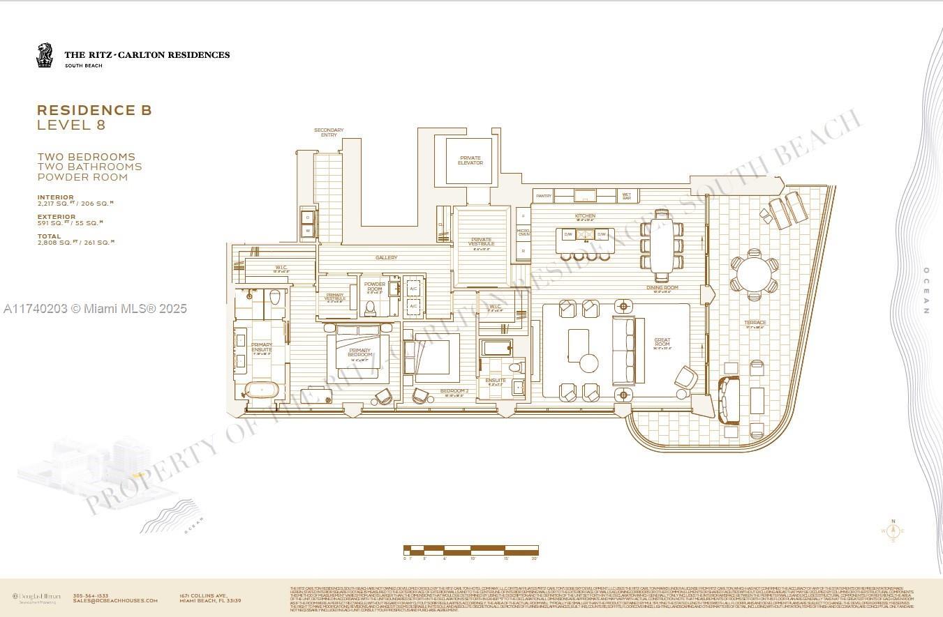 Discover the pinnacle of refined living with FULL OCEAN VIEWS at The Ritz-Carlton Residences, South Beach, an exclusive enclave of 30 oceanfront beach houses. Designed by renowned architect Kobi Karp with interiors by Studio Munge’s Alessandro Munge, this boutique property offers over 50,000 square feet of world-class amenities. Immerse yourself in beautifully landscaped surroundings by Naturalficial and indulge in exceptional dining curated by Michelin-starred Chef José Andrés. This elegant 2-bedroom, 2.5-bathroom residence spans 2,808 square feet, including a 591-square-foot terrace. It features a private elevator, a luxurious primary suite with an ensuite and walk-in closet, and expansive living spaces crafted for comfort and style.