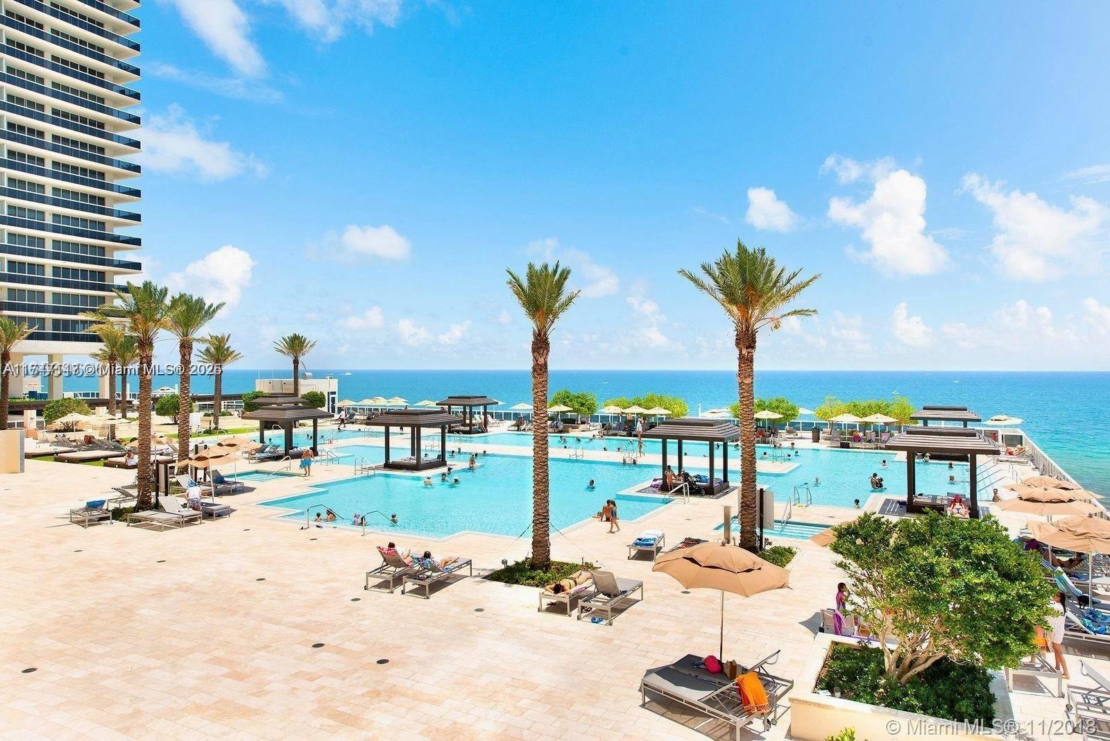 Stunning high-floor 2BD + Den/3BA condo in Hallandale Beach with breathtaking intracoastal and city views. This spacious 1,571 sq. ft. unit features a 177 sq. ft. balcony, perfect for soaking in the scenery. Located directly on the ocean, the building offers world-class amenities: a 50,000 sq. ft. full-service spa and fitness center, two-story gym, multiple pools, Jacuzzis, sauna, steam room, spa services, poolside café, restaurant, and bar with pool service. Enjoy 24-hour valet parking and security, all within a prestigious 9-acre property boasting 900 ft. of ocean frontage. Live the ultimate beachfront lifestyle with luxury, convenience, and relaxation at your fingertips!