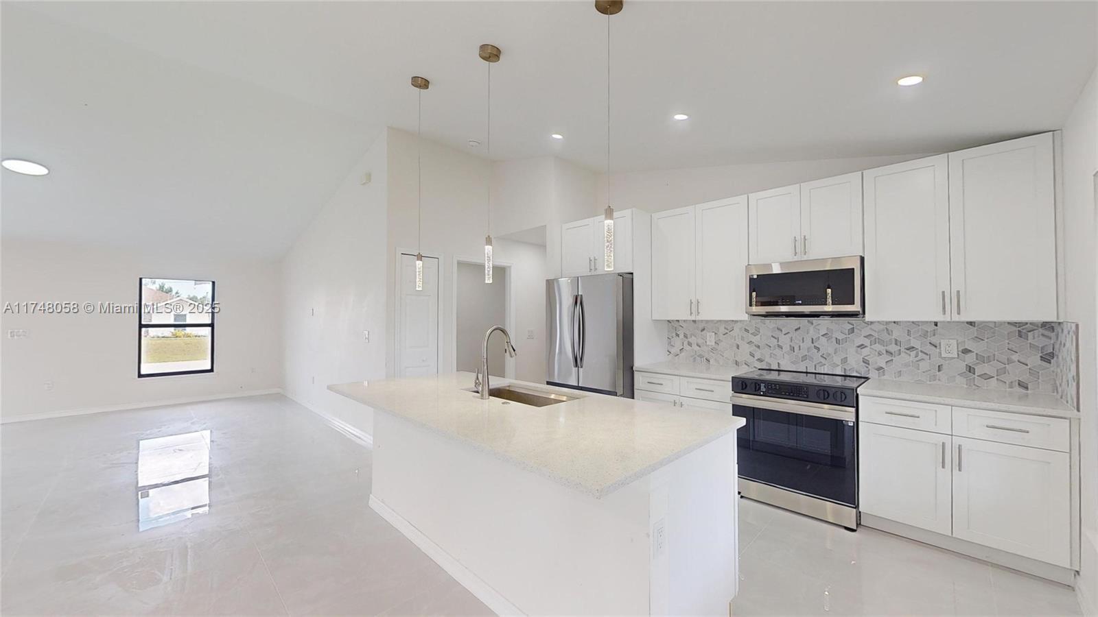 High-end finishes in a beautiful starter home. 2-car garage home near Coral Oaks Golf Club in NW Cape Coral. 3 bedrooms, 2 baths, 2285 total square feet, 1563 air-conditioned square feet on a 10,000 square foot lot. Open layout integrates family room and kitchen with quartz center island. Top-of-the-line stainless steel appliances. Bedrooms with closets, quartz countertops in bathrooms and kitchen. Quality construction. Imported 40”x40” porcelain flooring throughout. Hurricane windows, double entry door, and paver driveway. Don’t miss this incredible opportunity to be the first to live in this brand new home in NW Cape Coral!