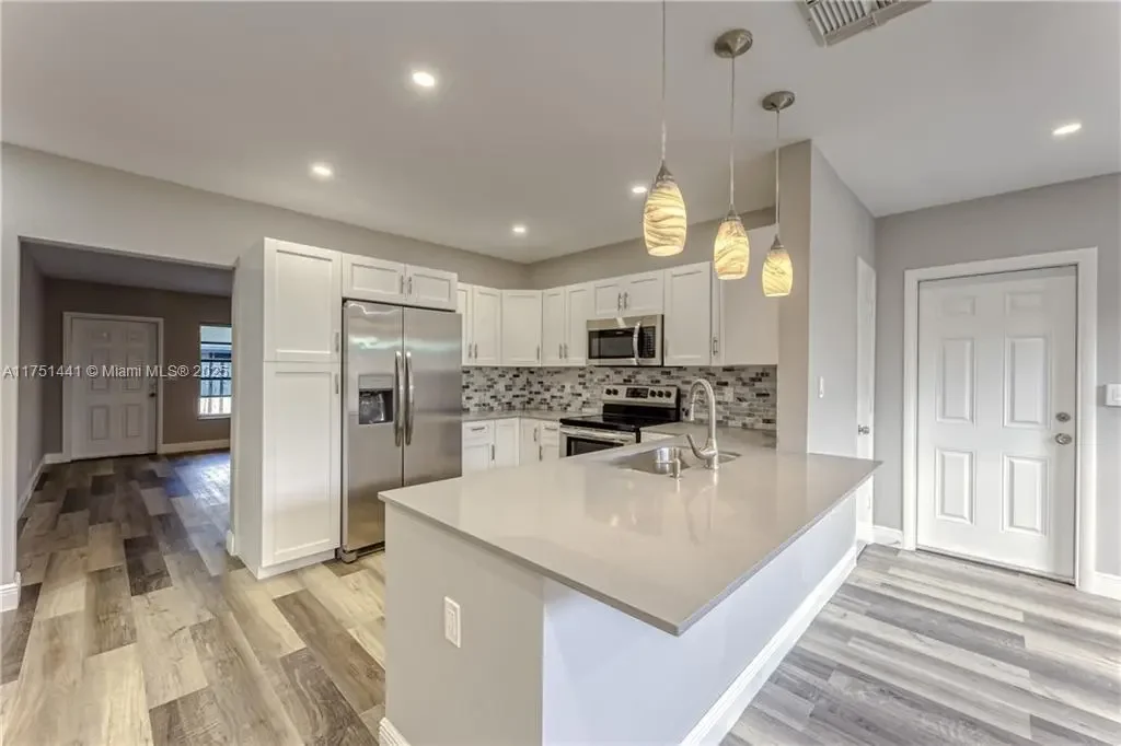 This beautifully renovated and modern investment property offers exceptional value with a legal duplex and an additional efficiency unit, plus an oversized garage! Each unit features 2 spacious bedrooms, 2 well-appointed bathrooms, a separate living room, and a kitchen that opens into a large family room, providing an open and inviting layout. Both units include their own laundry rooms and central A/C systems for added convenience and comfort. The property is equipped with two separate water meters and two FPL meters. The roof was replaced in December 2000, offering plenty of remaining life. The efficiency unit shares meters a with 1719. Just steps from many shops, parks, and restaurants, offering an unbeatable location for both tenants and investors alike.