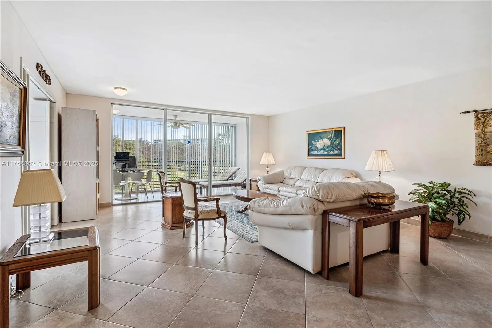 Highly Sought, seldom available, "King" apartment. Contiguous/pool, sauna, steps from your door. Walk to Golf Course and club house. Front row, 3rd from entrance, deeded parking space. Apartment is not on Catwalk. Two large enclosed terraces, smooth ceilings, huge master bath with Jacuzzi tub, and separate shower. Outstanding water pressure. Master bedroom has large walk-in closet. Attractive, durable ceramic tile throughout. Window treatments included. Kitchen is immaculate with recessed lighting. Jogging trails, tennis, golf, pickleball, tennis, golf. Publix on site, and Walgreen's and CVS close. Harrah's and Top Golf are all life style bonuses. Fabulous, perfectly kept unit in great community. Must be seen