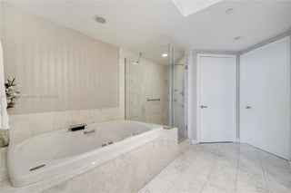 Experience luxury waterfront living in this stunning 3-bedroom, 3.5-bath residence at the prestigious Jade Brickell. Perched on the 26th floor, this flow-through unit boasts breathtaking bay and city views from floor-to-ceiling windows and two expansive balconies. A private elevator foyer leads to an elegant interior with marble floors, Italian cabinetry, and high-end appliances, including a built-in Miele coffee maker, dual ovens, and a wine cooler. The primary suite features two walk-in closets and a spa-like bath w/dual vanities, two water closets, a soaking tub, and a walk-in shower. 2 parking spots! Enjoy resort-style amenities, including an infinity-edge pool, fitness center, spa, 24-hour concierge, and valet. Prime Brickell location, steps from top dining, shopping, & entertainment.