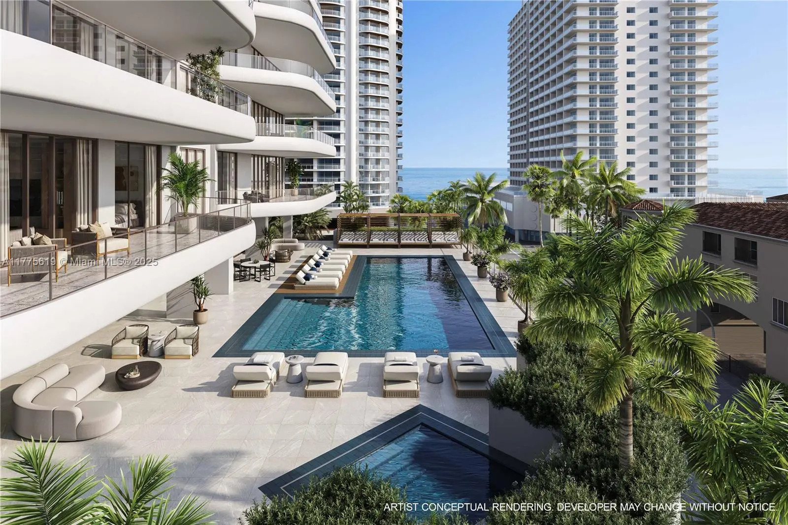 Framed by the Atlantic Ocean and Intracoastal in North Beach Village, one block from the Ocean on Fort Lauderdale Beach. Luxury interiors are designed by Adriana Hoyos Design Studio and feature sprawling 10’ ceilings, top tier appliances from Wolf & Sub-Zero including wine storage and gas cooktops, custom European inspired chef’s kitchen by Italkraft and expansive 12’ terraces with summer kitchens. A portfolio of curated amenities include a lobby café, resort pool & Jacuzzi, wellness center & spa with massage room, sauna, steam & cold plunge, beauty salon, state of the art fitness center, tranquil yoga lawn & movement room, rooftop lounge for sunset gatherings, pet spa and dog run, and multiple resident lounges. Yacht Club & Beach Club at The Conrad Fort Lauderdale Beach Hotel included.