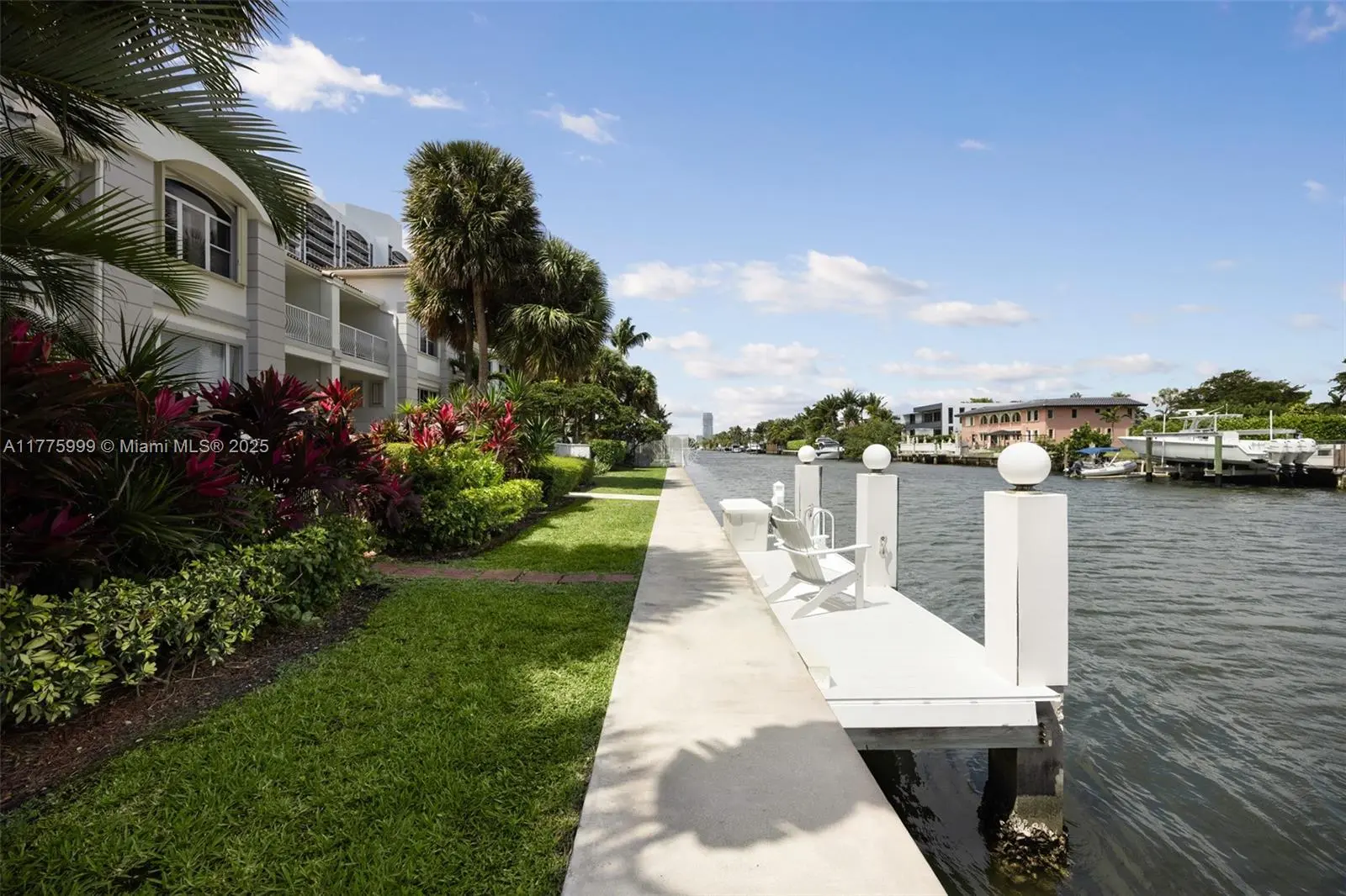 Located in the exclusive Courtyard Homes at The Point, this immaculate waterfront residence offers 12' ceilings, marble floors, and a spacious two-story layout. A private in-law suite with separate entrance adds flexibility, while the updated chef’s kitchen features professional-grade Viking appliances and sleek stainless finishes. The deeded dock sits on a deep-water, wide canal with 220V service, water, and direct Intracoastal access just minutes to the ocean, ideal for boaters. Enjoy resort-style amenities in this gated, full-service community, including spa, fitness center, salon, restaurant, and tennis courts.