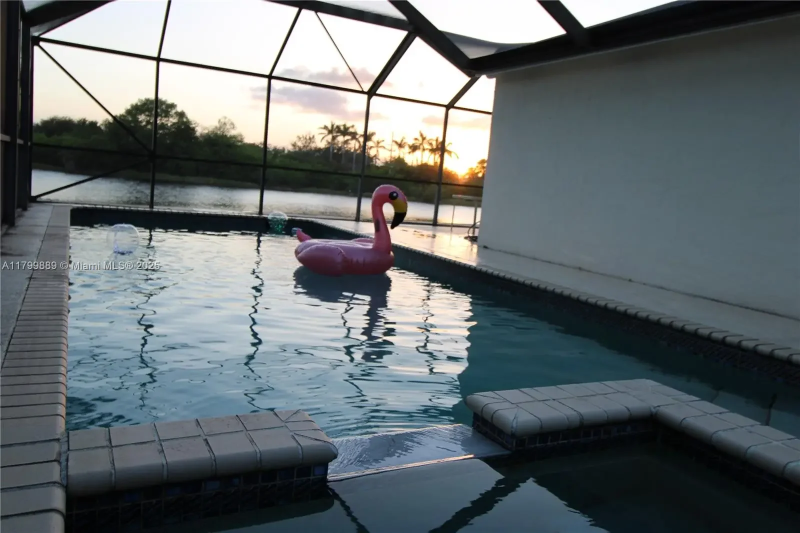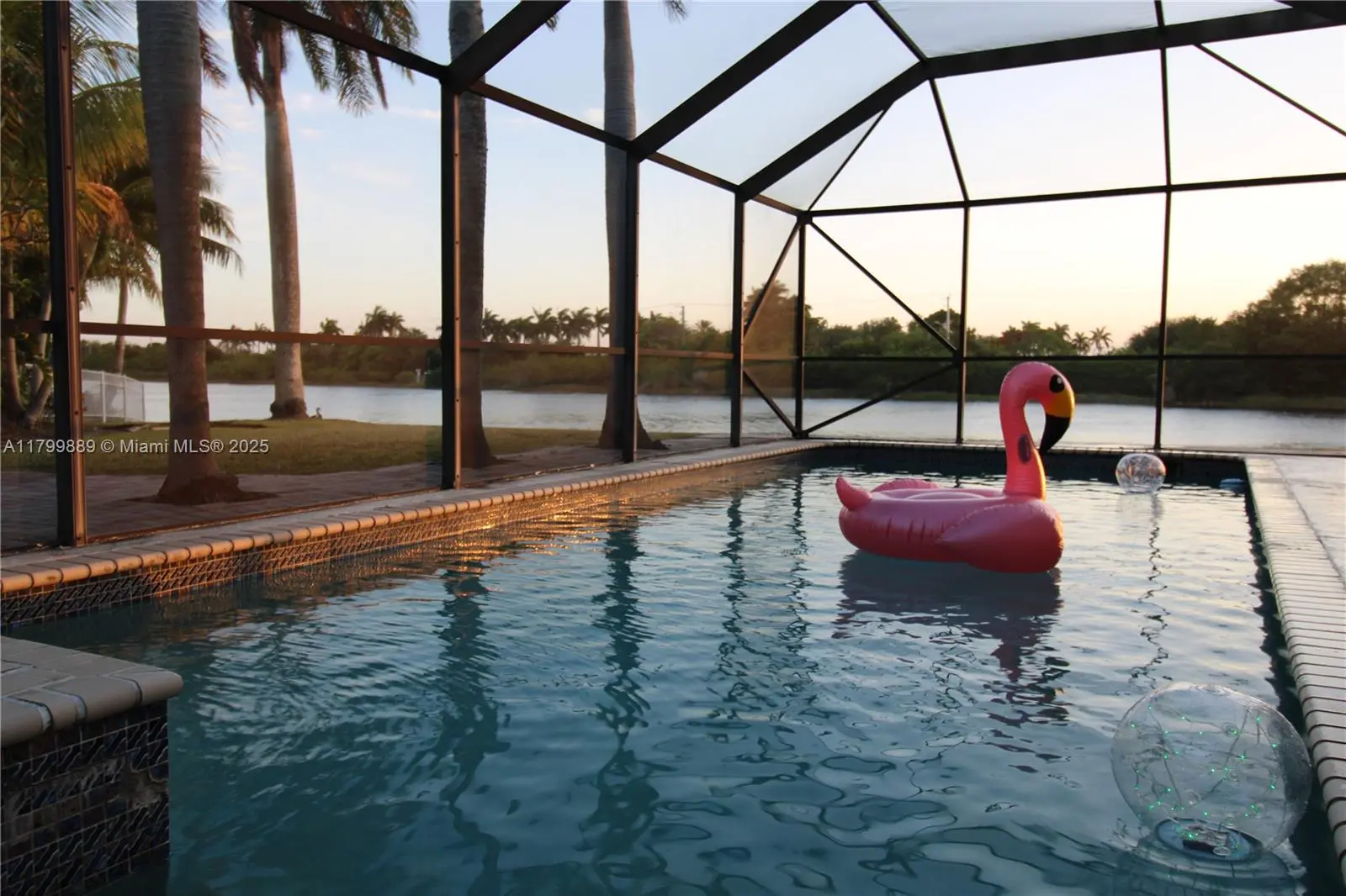 Stunning 3BD/2BA waterfront home in Silver Lakes with captivating lake views the moment you walk in! This bright, open one-story features soaring 10-ft sliders, a split floorplan, and an expansive primary suite with his & hers custom closets and an oversized roll-in shower. The kitchen is a chef’s dream with stainless steel appliances, granite counters, full backsplash, and wine fridge. Step outside to your private paradise: inground pool, hot tub, oversized screened lanai, lush landscaping with mango, coconut, plumeria, and palms. Enjoy sunsets on the paved waterfront deck—perfect for entertaining, kayaking, or a fire pit. New roof 3/2025. HOA includes high-speed internet, pools, parks, clubhouse, walking trails & more!
