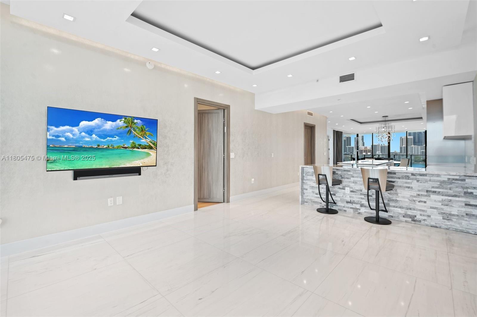 Welcome to Residence 803 at Prive, a luxury retreat on a private island. Spanning 8 lush, waterfront acres, Prive offers a lifestyle of sophistication and panoramic views in the heart of Aventura. A stunning 3-bed, 4.5-bath flow-through residence, plus a dedicated staff room, boasts 2,750 sqft of meticulously designed living space & Miele appliances in the kitchen. Enjoy sweeping vistas of the ocean, Intracoastal, and city skyline w/2 expansive terraces, w/a summer kitchen. Enter through a private foyer into a residence with thoughtful design. Prive’s resort-style amenities include: 2 swimming pools, fitness center, a private restaurant, wine & cigar lounge, Spa, tennis court, 24-hour concierge & valet, private marina accommodating up to 150 ft vessels.
