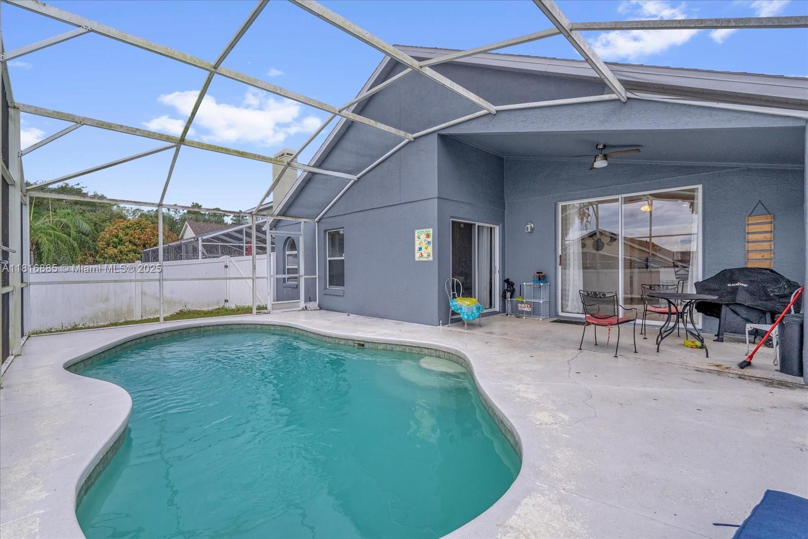 Welcome to this a beautiful single-family home located in the highly desirable Highlands Reserve Golf Community! Airbnb-approved with NO rental restrictions, this property is perfect as a primary home, vacation rental, or investment. The home features a cozy fireplace in the living room, two bedrooms located off the main living area, and an additional room that can serve as a fourth bedroom or office. Roof is 2019. Enjoy a heated pool with a screen enclosure, perfect for relaxing or entertaining year-round as well as a 2-car garage converted into extra living space with a separate AC unit (can be easily converted back to a full garage). Short sale- subject to lender approval. Buyer responsible for third party fees.