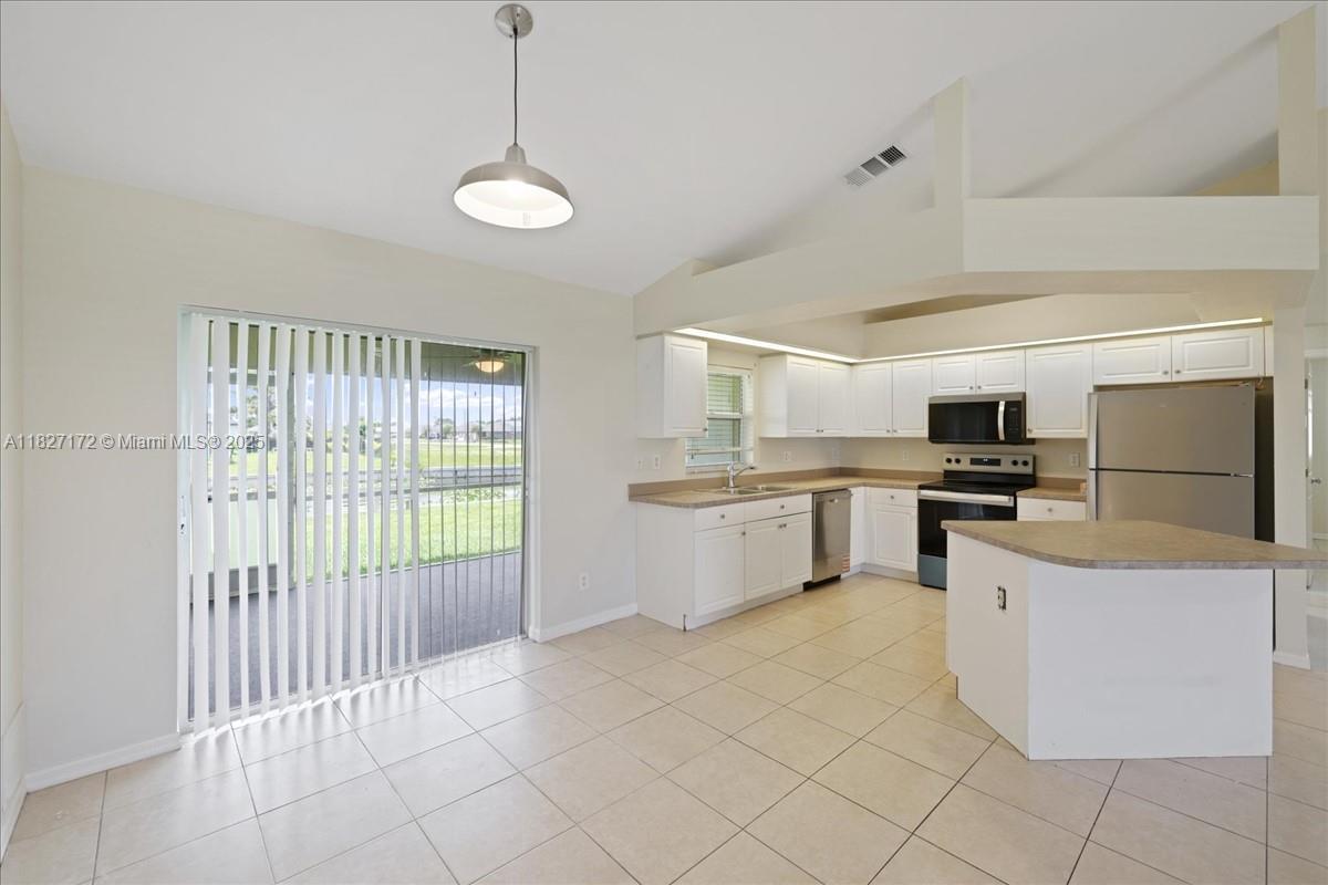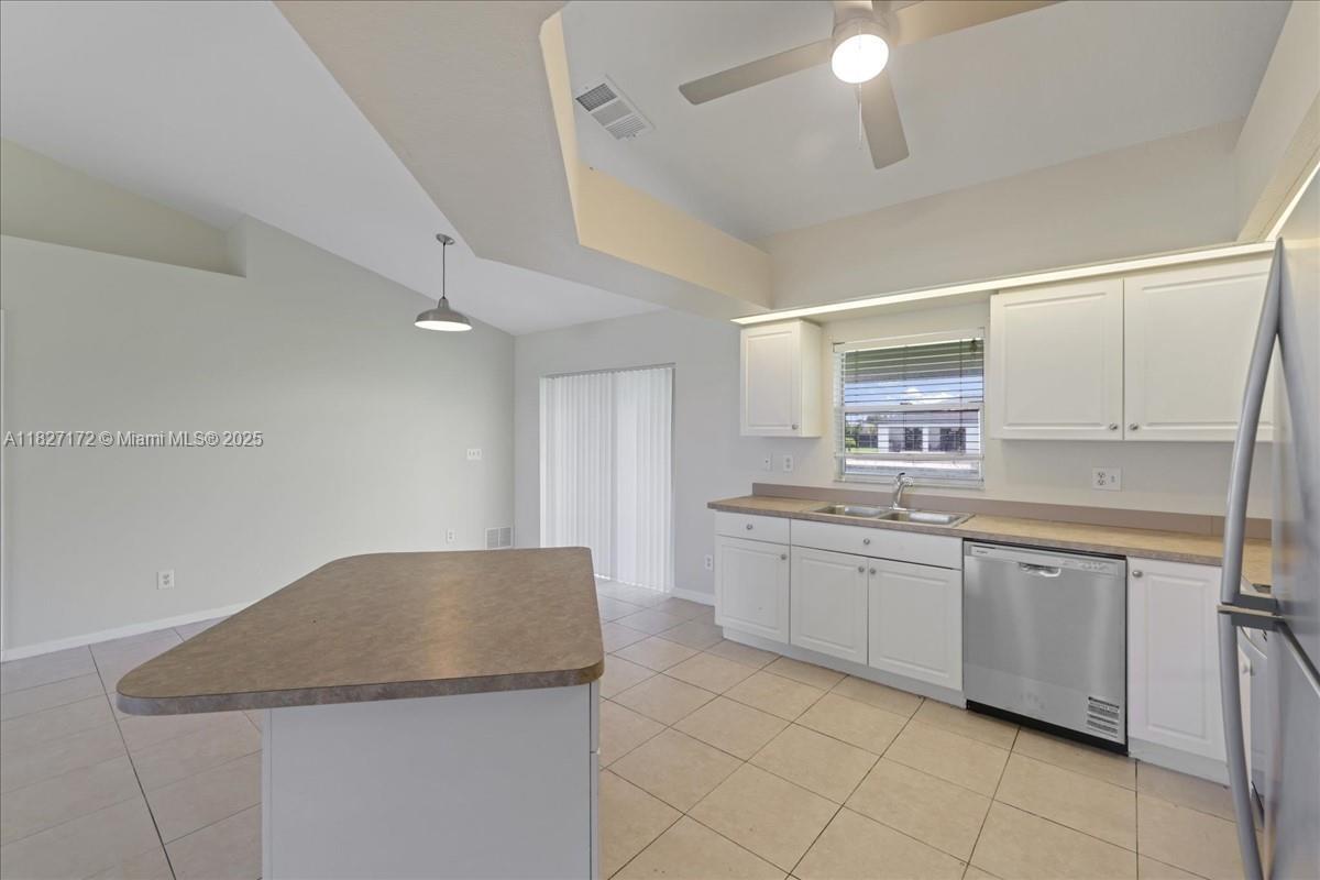 Welcome to your perfect Florida retreat! This beautifully updated 4-bedroom, 2-bathroom home is nestled along a freshwater canal, offering stunning views and a peaceful atmosphere right from your screened-in lanai. Step inside to find a spacious, all-tile interior freshly painted both inside and out. The heart of the home is a chef-inspired kitchen featuring a large island—perfect for meal prep or entertaining guests. The open living area provides plenty of room to relax and unwind, while the inside laundry room adds everyday convenience. Centrally located near shopping, top-rated restaurants, and the world-famous Southwest Florida beaches, this home offers the ideal blend of tranquility and accessibility. ? Lawn service included in the rent – just move in and enjoy!