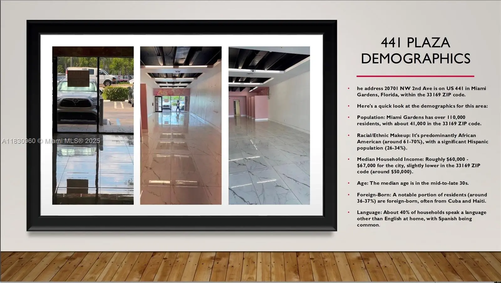 Prime Retail Space for Lease - US-441 Plaza, Miami Gardens Seize a fantastic opportunity at the bustling US-441 Plaza in Miami Gardens! We're offering two adjacent commercial retail spaces totaling 1920 sq/ft, featuring ceramic floors and two bathrooms. The spaces are available for $3250/month for one unit or a combined $6250/month for both. Benefit from a daily traffic count of over 65,000 cars on US-441, ensuring massive visibility. This location is further enhanced by a dense residential area in all directions. Located in a hot commercial corridor, this plaza is extremely busy, neighboring 25+ diverse tenants, ensuring high foot traffic and strong business potential. Don't miss out on this prime retail location!