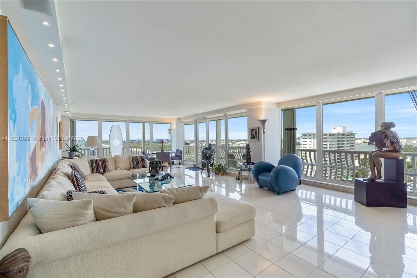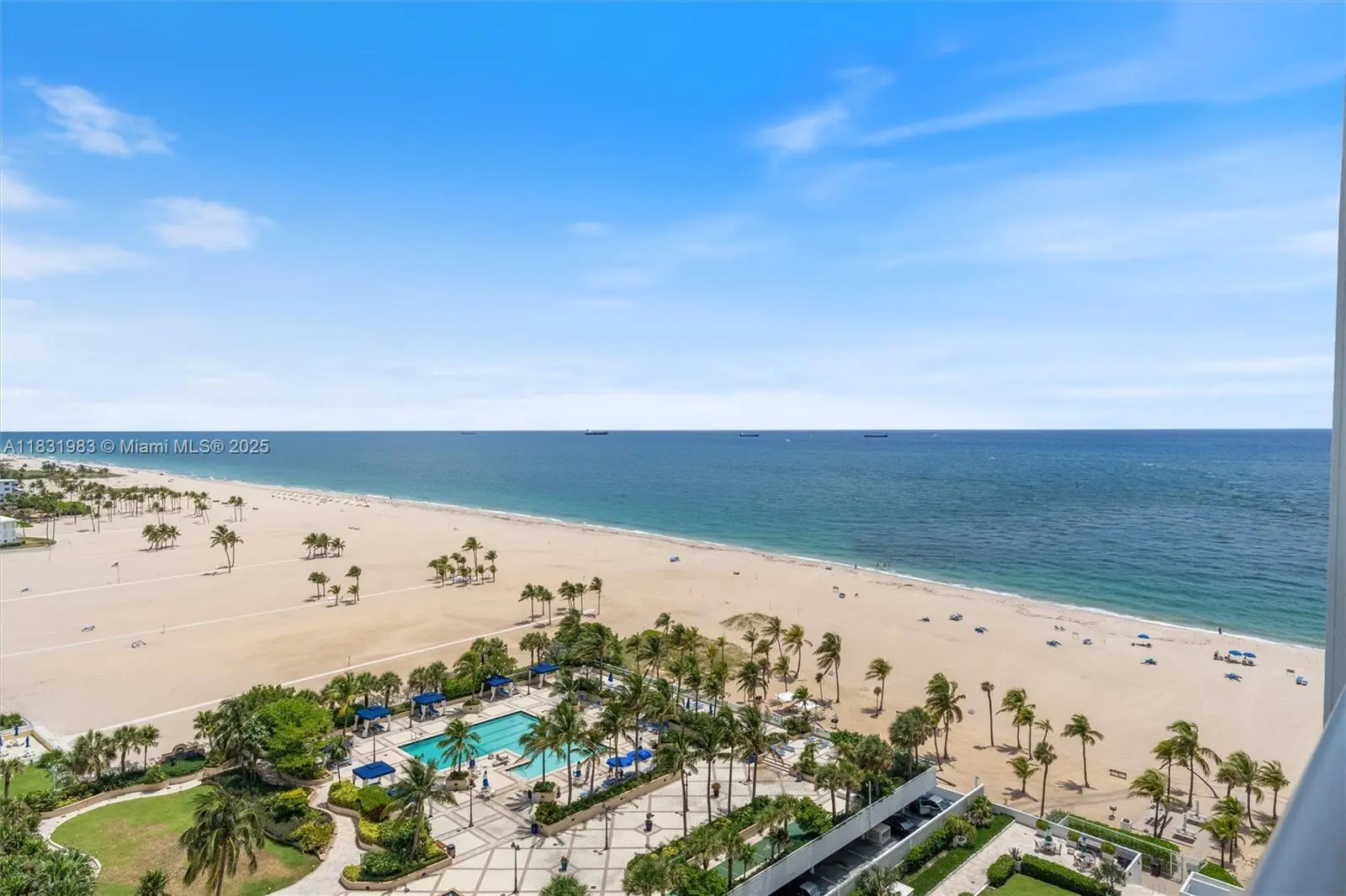Rare and highly desirable 4 BR/3.5 BA SW & NW corner at prestigious Point of Americas II is ideal for entertaining and gracious living. Enjoy spectacular 270 degree views from Miami to the Hillsboro Lighthouse. Approximately 3,795 SF with expanded foyer. Features include one of the best combined floor plans in the building, with gallery/welcome room, primary suite with dual baths, dual walk in closets and dressing area, den/secondary primary suite, home office or bedroom, laundry room, motorized shades, 2 parking/2 storage spaces & more. 870 SF wraparound terrace. Close proximity to restaurants & beach clubs. Five star resort amenities include grand lobby, restaurant, fitness center, guest hotel rooms, lush pools & beach service on the widest beach in Fort Lauderdale.