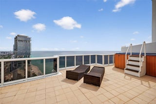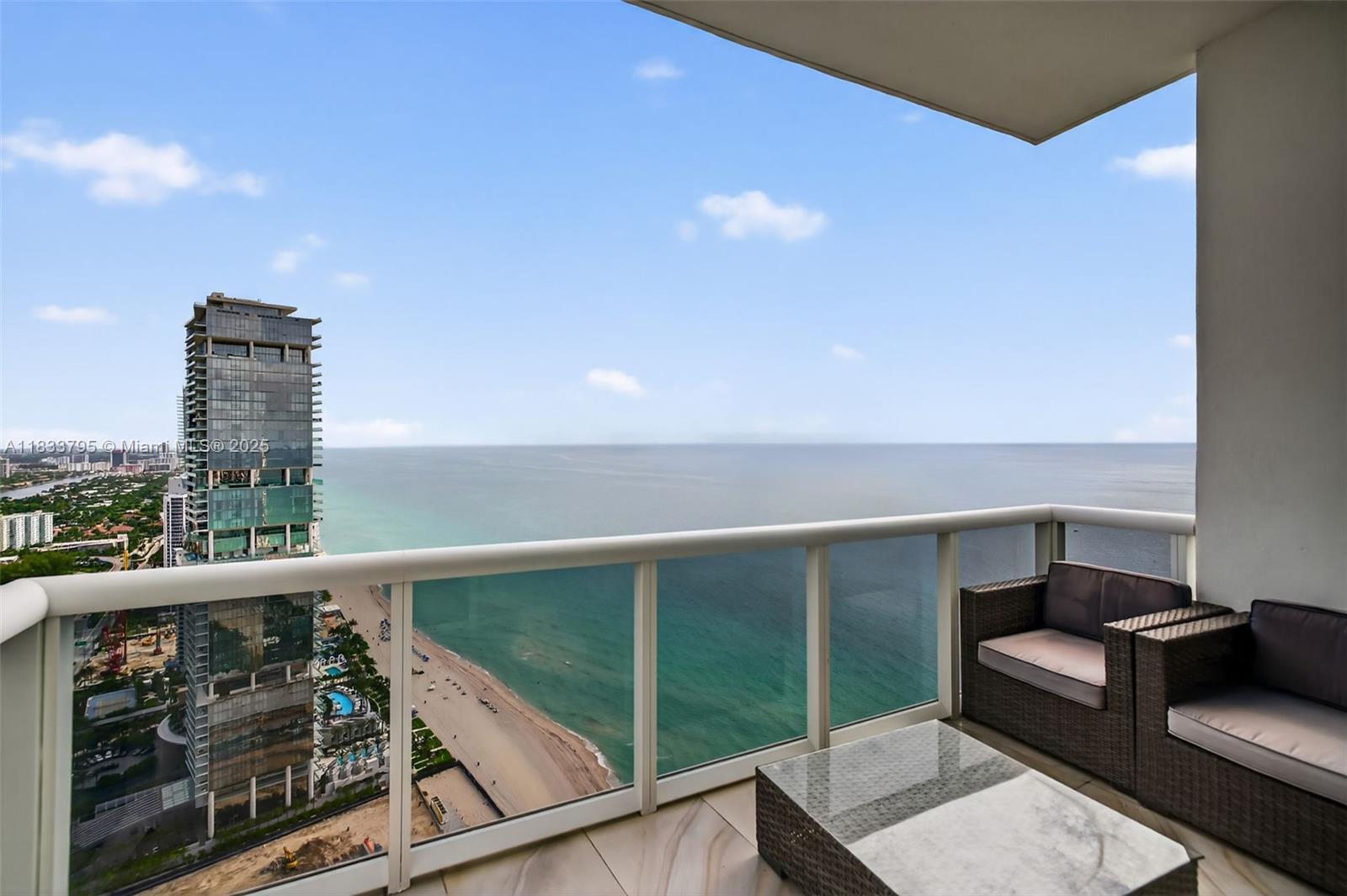 One of a kind! TWO combined tower suites, TWO stories, over 3,800 SF interior (approx. 5,700 SF total with balconies & terraces). 4 beds, 4.5 baths, soaring 11'–18' ceilings, private glass elevator, and stunning ocean, downtown Miami, Ft. Lauderdale & Intracoastal views. Enjoy rooftop ocean-side exercise lap pool with spa jets, top-of-the-line finishes, Roberto Cavalli upgrades, German kitchen, and luxury resort amenities: beach/pool services, restaurants, spa, tennis, 24/7 security. Major crypto or property exchange accepted! Owner financing! Easy to show — call today!
