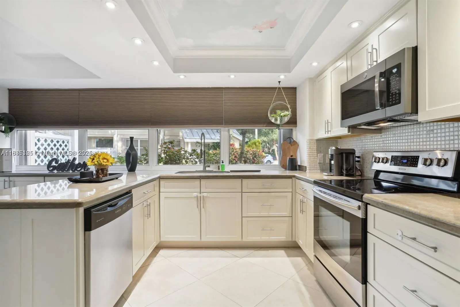 Beautifully updated townhouse for sale in the only community in the Meadows with a 24/7 manned gated entrance. This home comes with a brand new A/C, dishwasher, and screen enclosure with hard roof (w/permit). A digital keypad, nest thermostat, ring doorbell system, and a 75" Sony TV are all included. Metal roof and accordion shutters on the entire home provide safety and optimal insurance savings. Enjoy the fully renovated kitchen with matching GE appliances and soft close cabinetry. The two assigned parking spaces are adjacent to the walkway leading to your front door. A stunning White Oak glass staircase compliments the vaulted ceilings at the center of the home and the impressive built-in closet in the upstairs bedroom adds to the surplus of storage throughout the home. FHA approved.