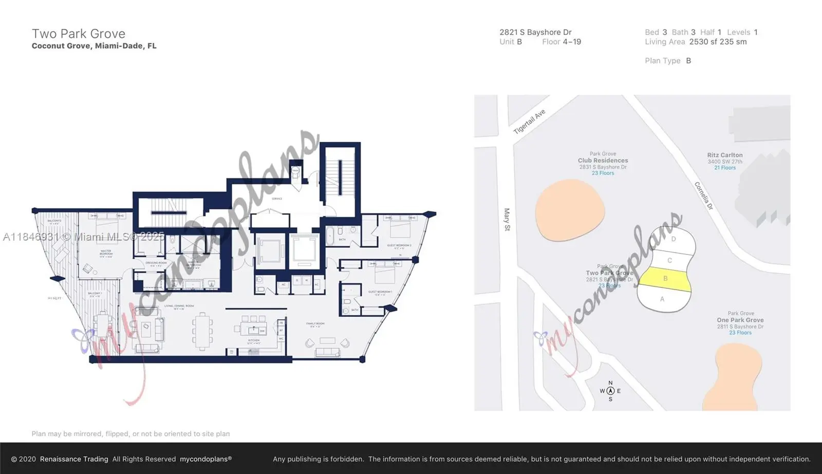 One-of-a-kind residence with private foyer, 12’ ceilings, floor-to-ceiling windows, marble flooring throughout. This 3 bed + den split features 3 bed with private en-suite baths, custom wood details, upgraded Italian kitchen w/marble countertops, premium appliances. Primary suite w/ dual walk-in closets and a luxurious marble bathroom. Park Grove features over 3.5 acres of 5-star amenities: multiple gyms, 24-hour concierge, spa, fitness center, 4 pools w/ cabanas, kid’s room, restaurant, Hotel-like services such as maids service, and in-room dining. Movie theatre, wine room and private curated art gallery, are amongst the things to expect when living there. Includes two assigned side-by-side parking spaces.