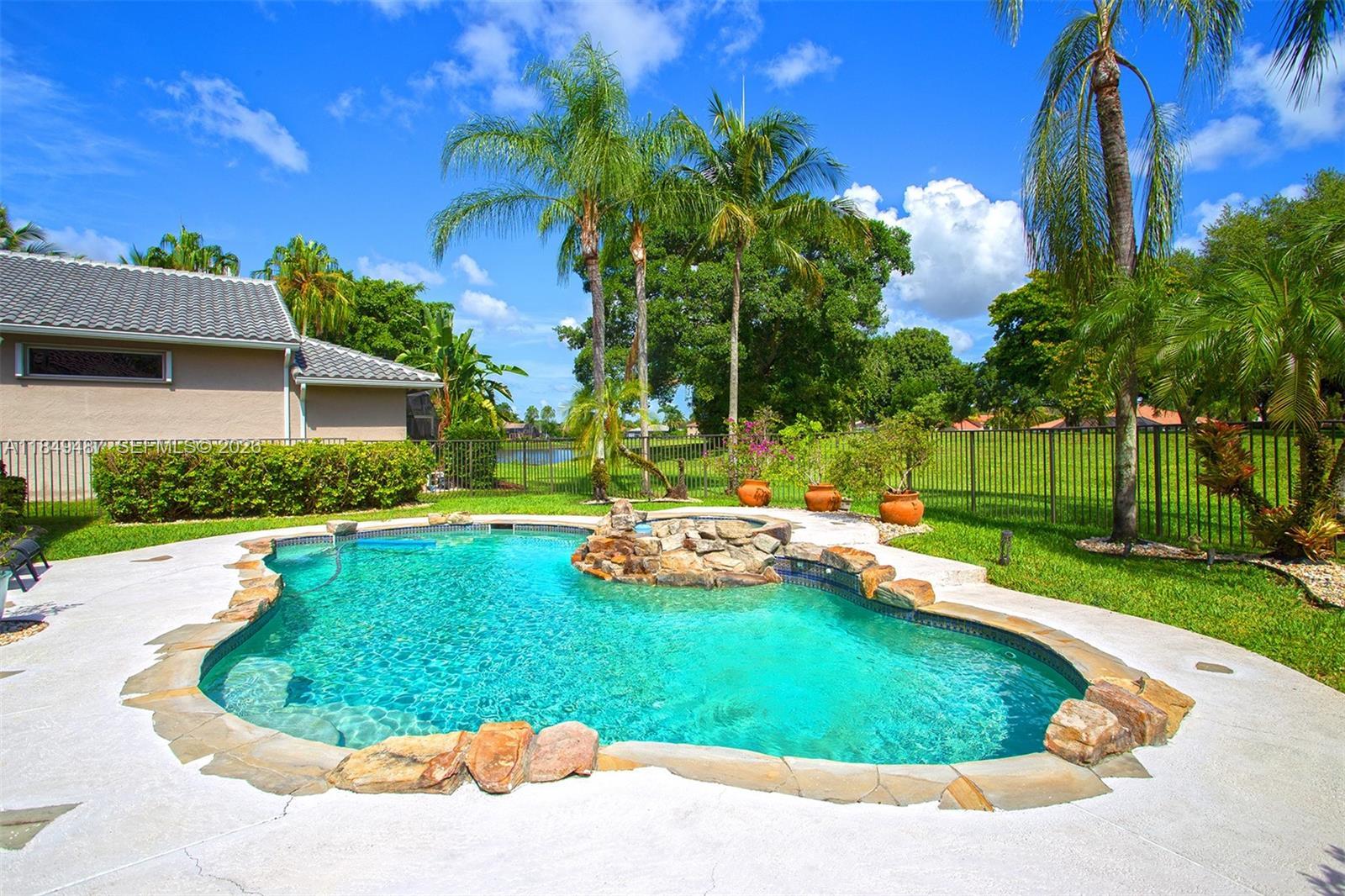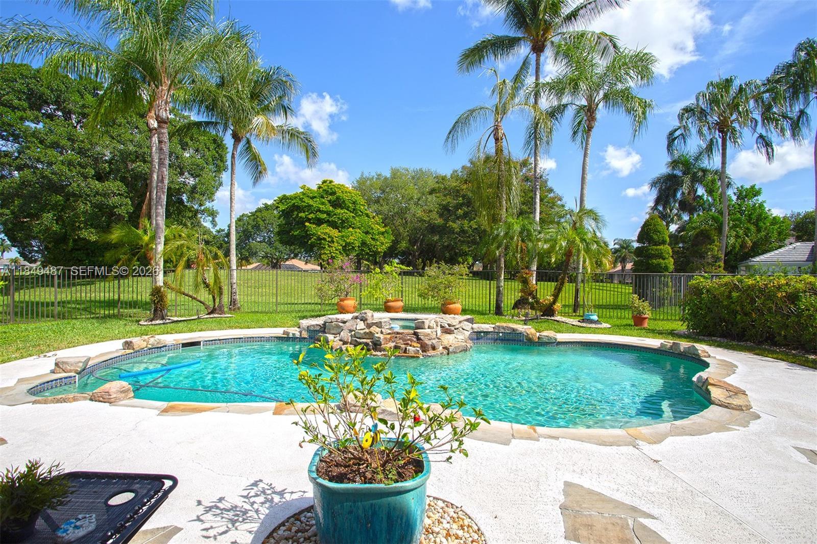 This home offers a rare green backyard oasis, providing exceptional privacy and natural surroundings rarely found in the area. Located in the prestigious Weston Hills community, this elegant two-story home offers spacious living, abundant natural light, and privacy. The south-facing front and north-facing backyard enhance brightness throughout the day and highlight the open layout with high ceilings. The first floor features two bedrooms, including a primary suite with direct access to the patio and pool, with no rear neighbors. Upstairs offers two additional bedrooms and a large loft that can be converted into a fifth bedroom, office, or media room. Neutral tile flooring, French doors, and large windows create bright, flexible spaces. Roof replaced in 2018, A/C approximately 10 years old, and newer electric water heater. Private backyard with lush landscaping and pool, perfect for the Florida lifestyle.