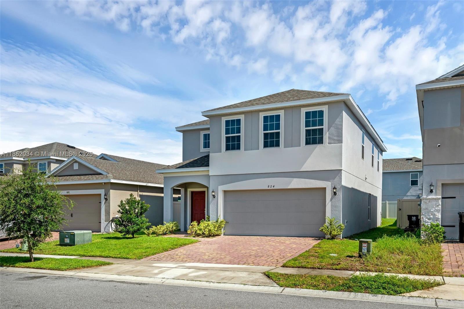SoFla too expensive?? Come to 824 Scrub Oak Hammock Rd in Davenport, FL!! —a newer 4 bedroom (+ extra room), 2.5 bathroom open-concept home with tile flooring in the first level and wood vinyl flooring throughout the stairs and the second level. The first level features the open kitchen and living space w/ additional room that can be used as an office or guest bedroom with the half bathroom right across. The 2nd floor contains a deep loft area that can be used as a playroom or family space with the bedrooms together w/ the laundry room close by. Amazing amenities in community and solar panels will be paid off @ closing AT NO COST TO BUYER! Airbnb/VRBO/short-term rental friendly!! Come and see!!