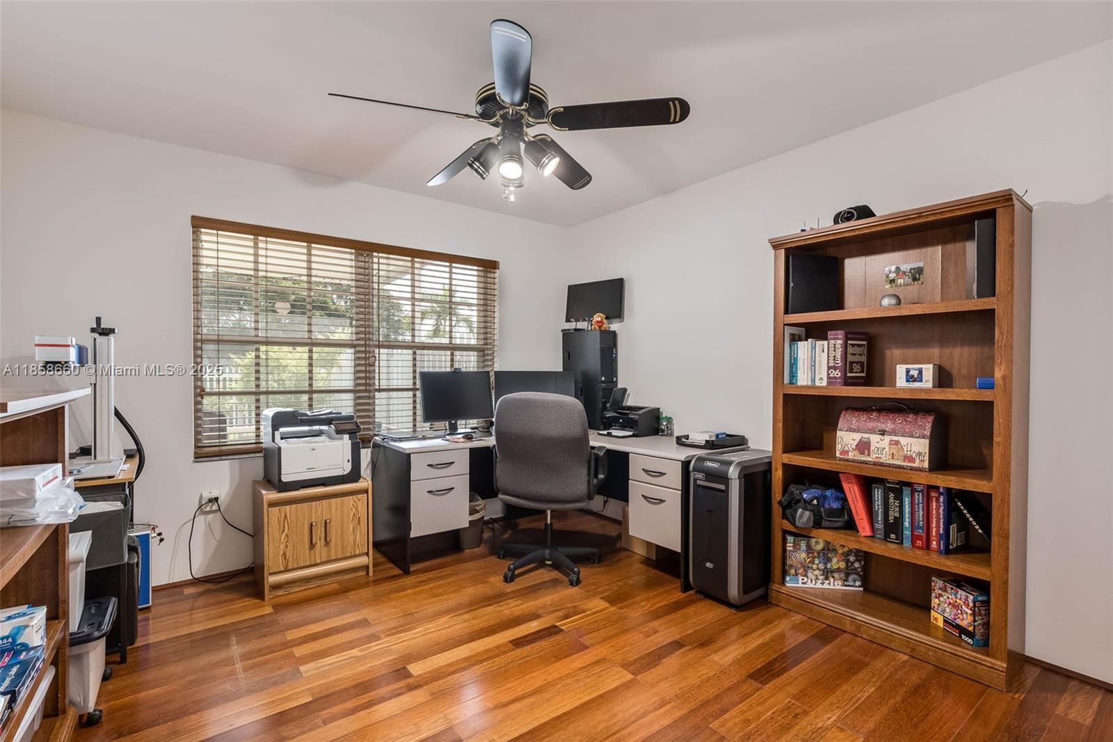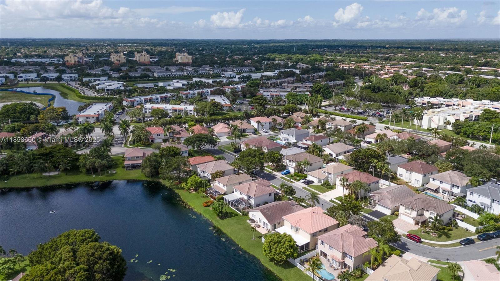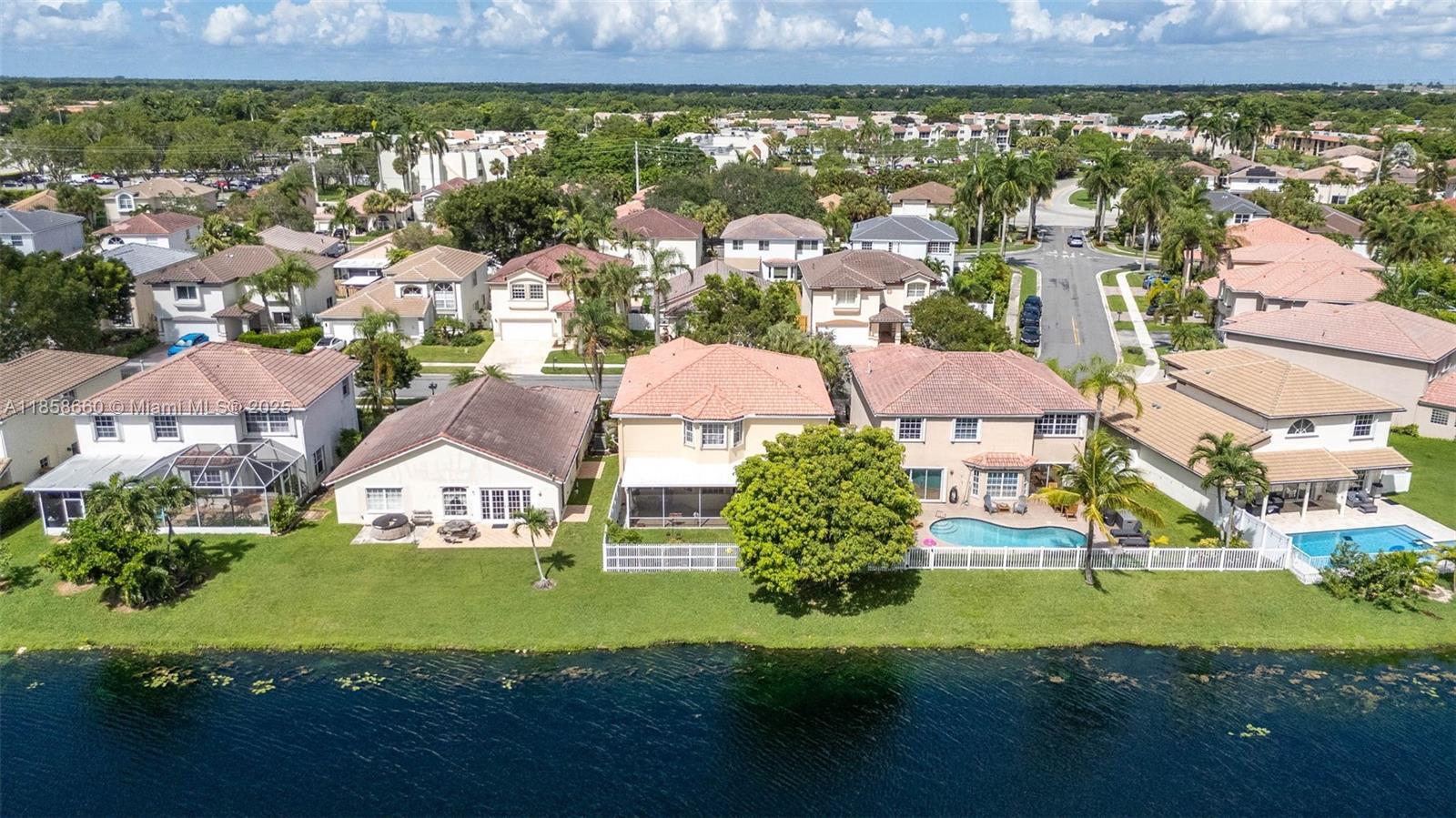 Beautiful Gem in Weston... Two-story home in the highly sought-after community of The Gables. This amazing five-bedroom, four-bath lakefront home is ready for new owners! The home just received a new plumbing upgrade ($25K), has been freshly painted, popcorn removed from the first floor, with living/dining areas featuring remote shades and high ceilings. The first floor bedroom, stairs, and second floor have wood floors. The house includes a built-in generator that can power the entire house during an outage and accordion shutters throughout. Enjoy the stunning covered and screened patio overlooking peaceful lake views. Neutral finishes throughout, house and fence freshly painted, roof just cleaned—it's a must-see! Amazing schools and friendly neighborhood!