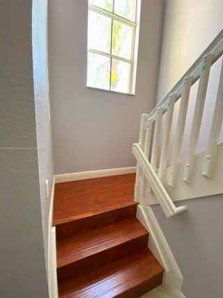 Beautiful two-story home in the gated community of The Falls, Weston. This residence offers 5 beds and 3.5 baths, including a master suite on the first floor and an additional suite upstairs. The updated kitchen features wood cabinetry, granite countertops, backsplash, and stainless-steel appliances. Open living and dining area with tile in social spaces and wood floors on the stairs and second level. Accordion shutters on all windows. New roof and gutters 2019, garage door 2017, water heater 2023, and AC unit 2021. Community amenities including pool, basketball, volleyball, and playground. Zoned for A+ schools: Eagle Point Elementary, Tequesta Trace Middle, and Cypress Bay High. Conveniently located next to Weston Lakes Plaza with Publix, restaurants, shops. Don't miss it.