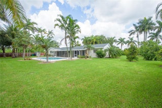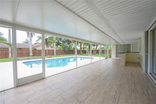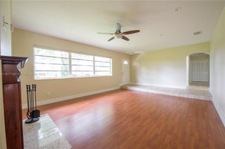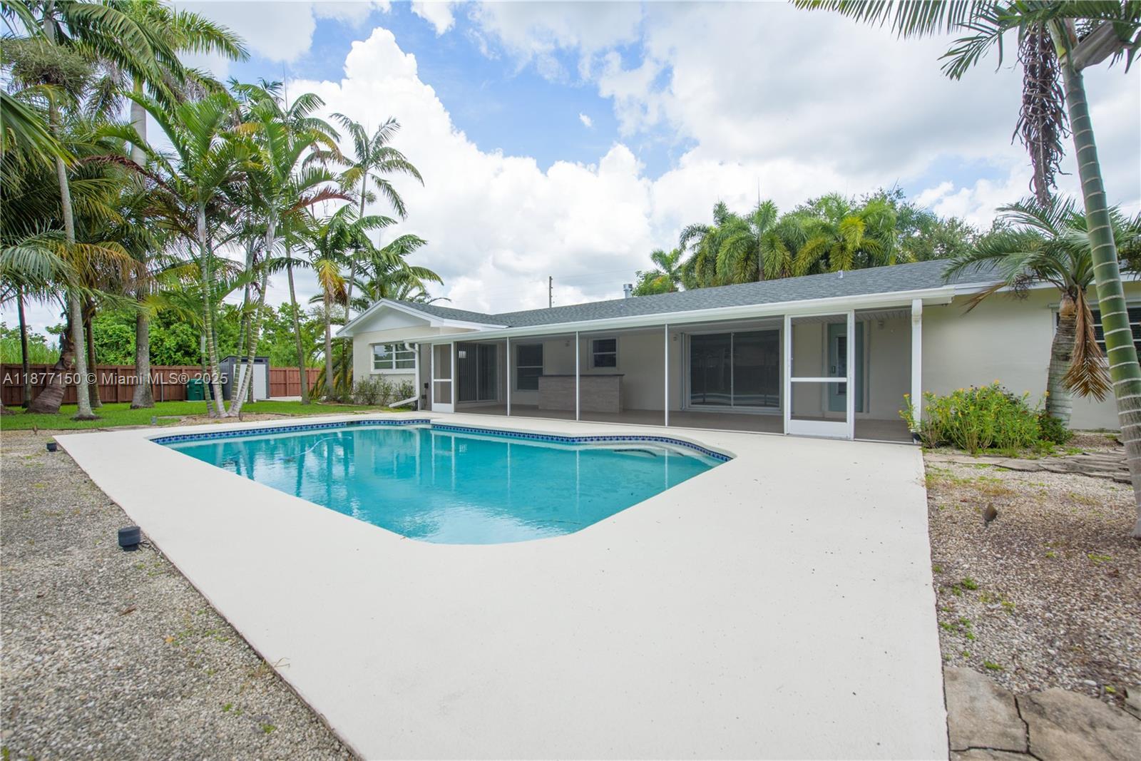 Spacious 4/2 rental in Gerardmere Acres! Features a cozy living room w/laminate floors, decorative fireplace, and recessed lighting. Large family room opens to pool & patio. Kitchen offers stone countertops, eat-at counter, pantry, SS appliances, & double sink. Tile dining room, 1-car garage w/W&D, storage, and A/C handler. Master suite with walk-in closet, private bath, and sliding doors to patio. Three additional bedrooms with laminate floors, fans/lights, and closets. Guest bath w/double sinks, shower, patio access. Screened patio, summer kitchen, pool w/cool decking, fully fenced yard, carport, fruit trees, alarm-ready, electric gate, no HOA, and new roof!