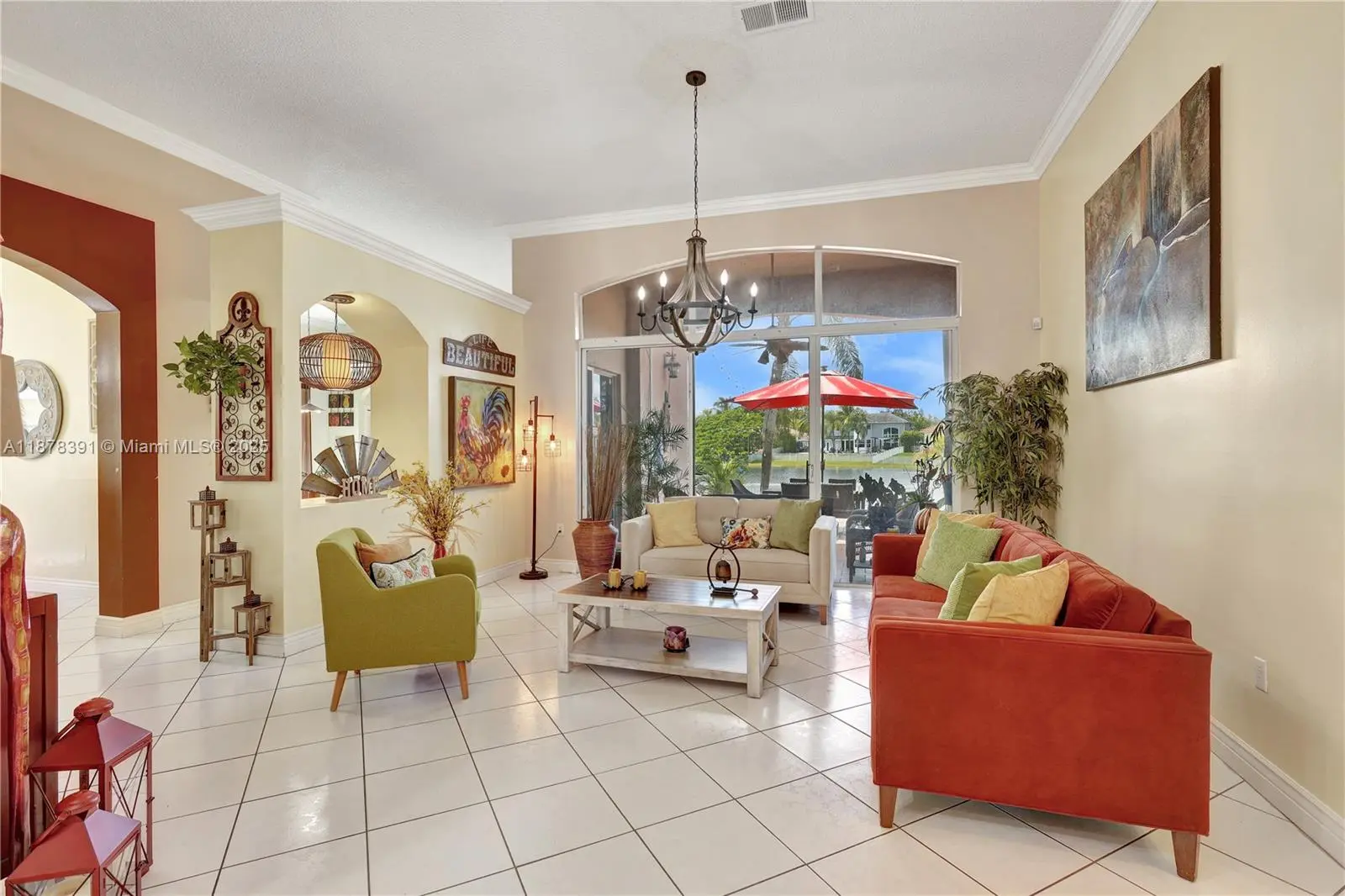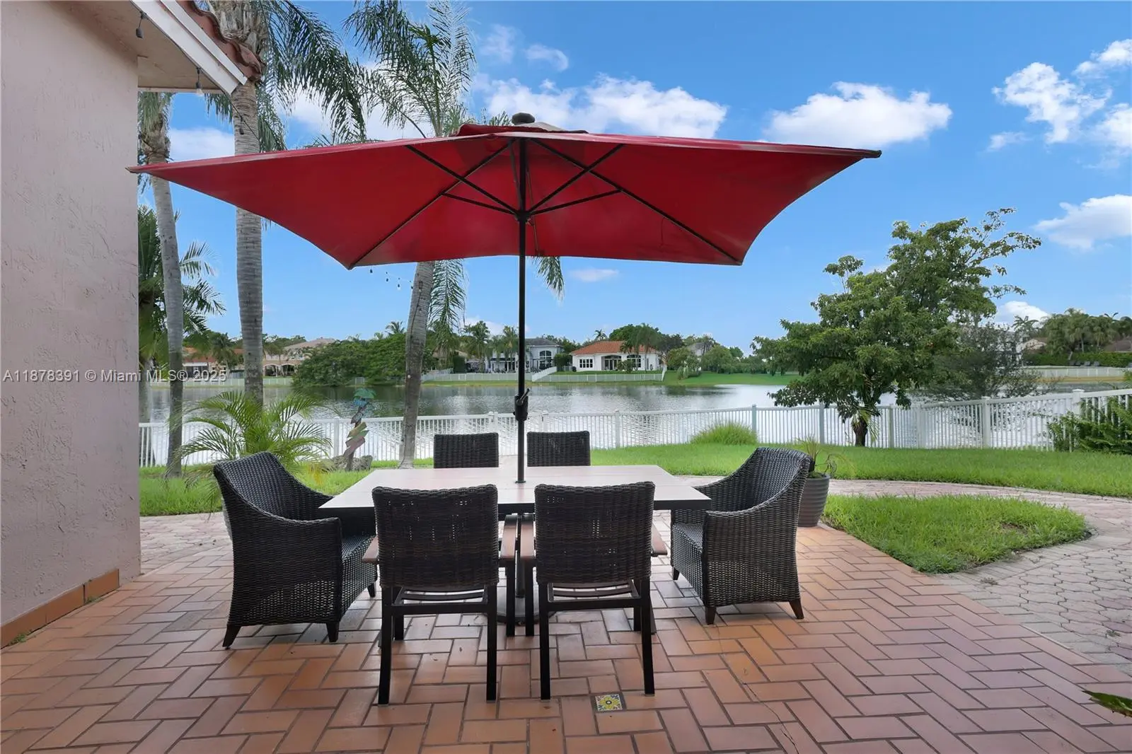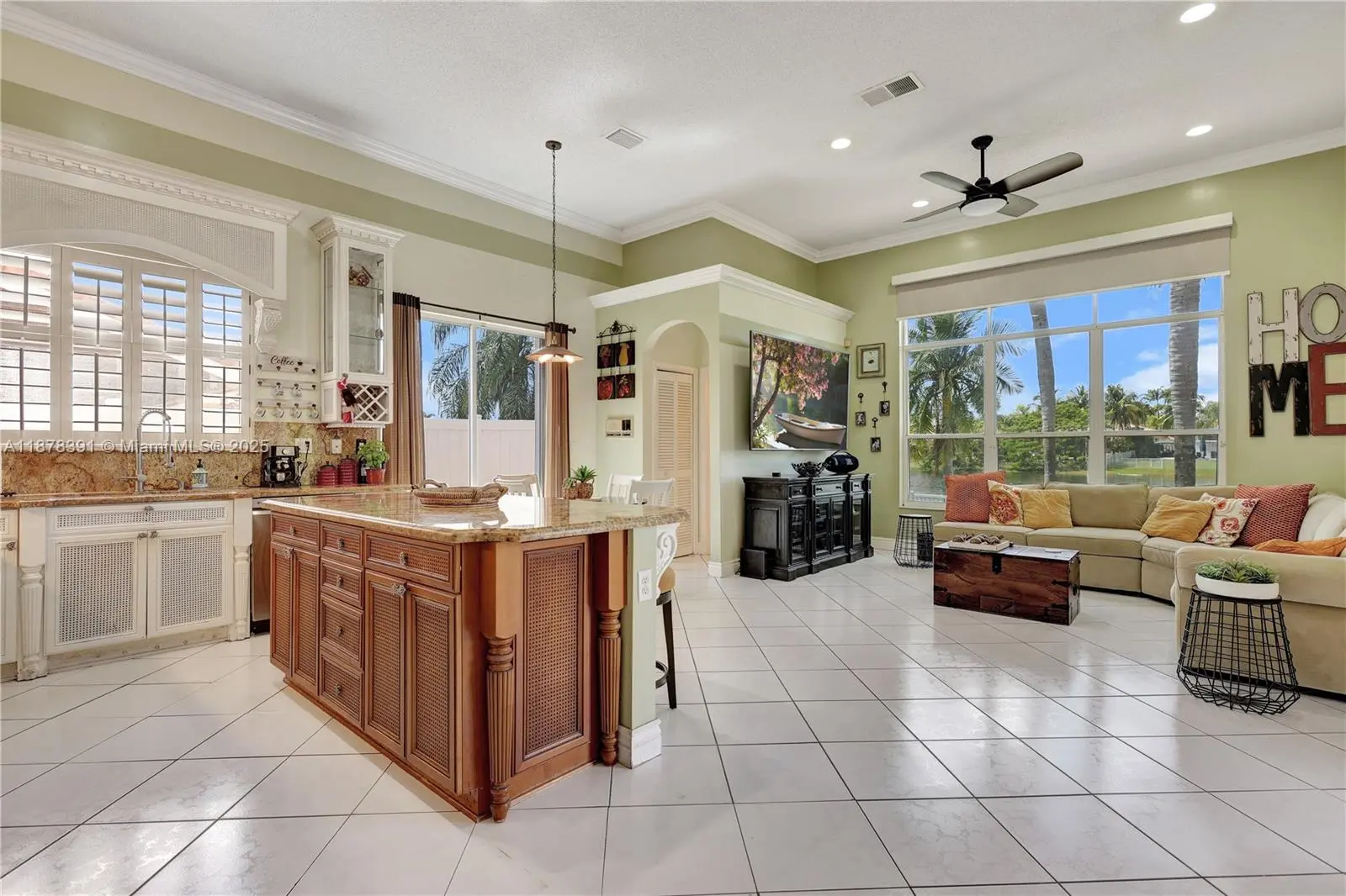 Absolutely gorgeous one-story home! This 4-bedroom, 2.5-bath residence offers breathtaking lake views and a spacious open-concept layout. Roof replaced in 2019. Features include tile flooring throughout, crown molding, accordion shutters, Bahama shutters, and a brand-new roof with a high-efficiency A/C. The gourmet island kitchen boasts granite countertops, perfect for entertaining. The oversized master suite includes a luxurious bath with a Jacuzzi tub. Additional highlights: sprinkler system, garage faucet with exit door, attic access, and a fully fenced yard. Enjoy the spectacular and serene views of the magical lake right from your backyard. Chandeliers and furniture are negotiable. Room for a pool. MOTIVATED SELLER