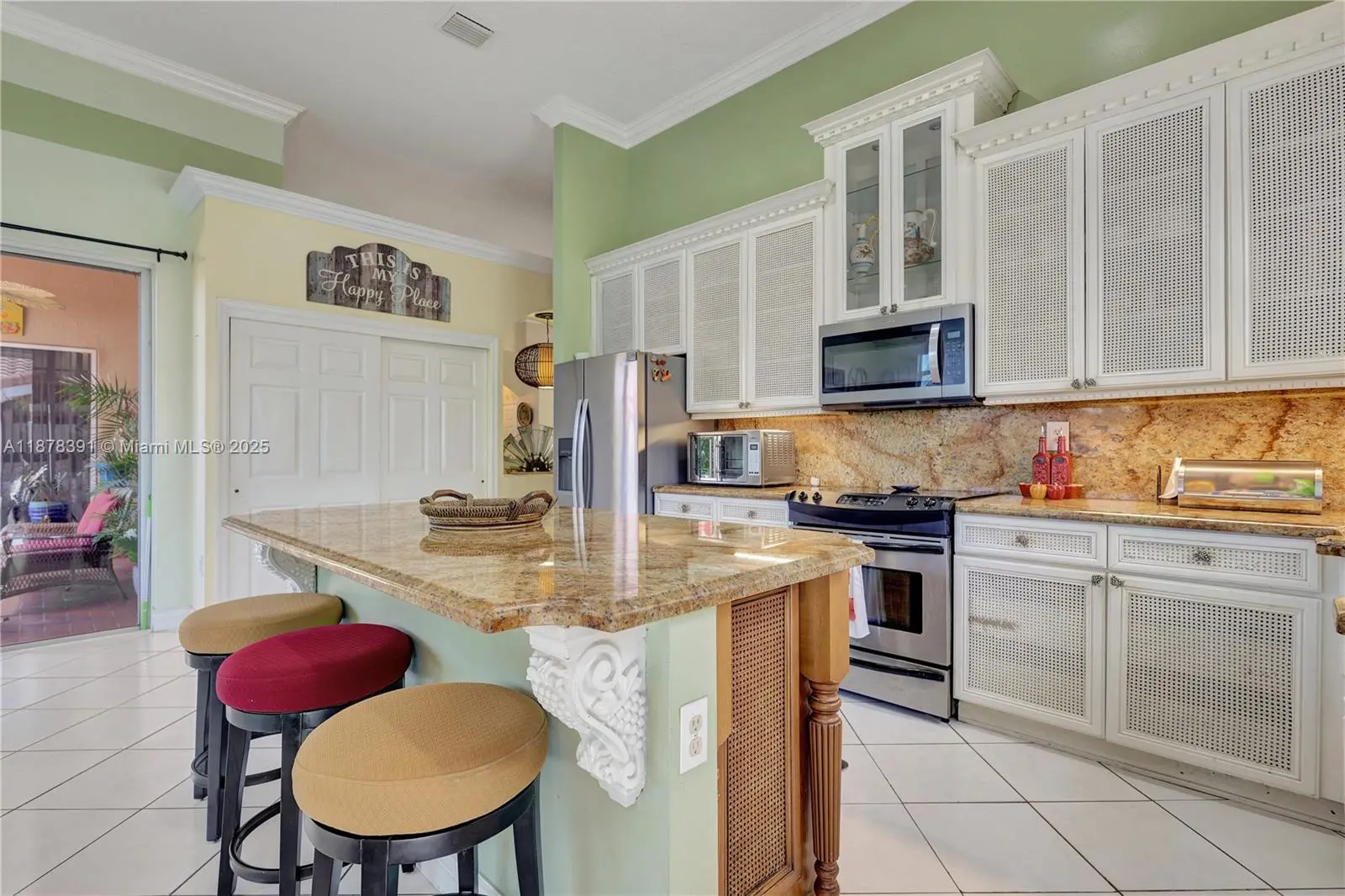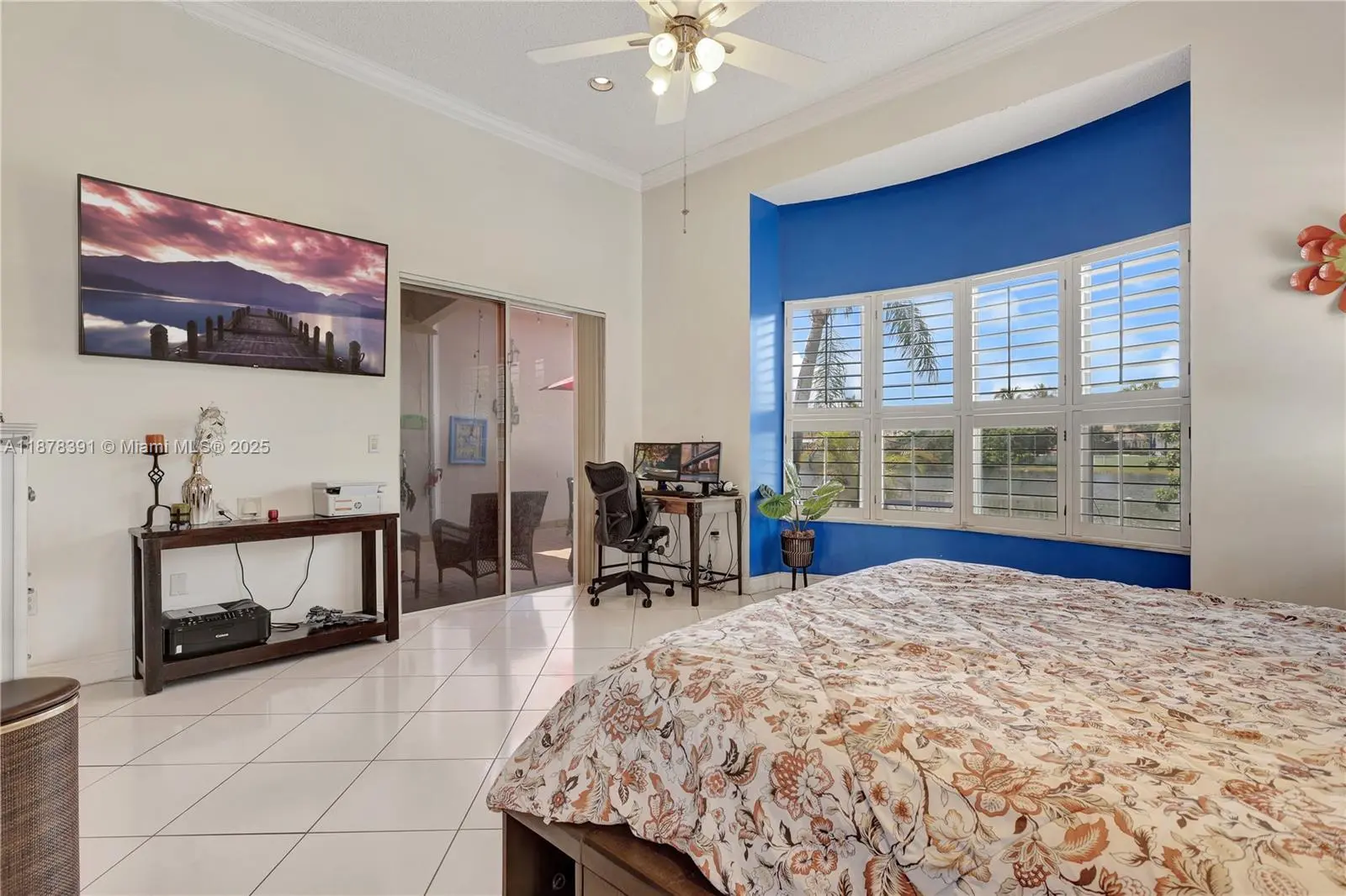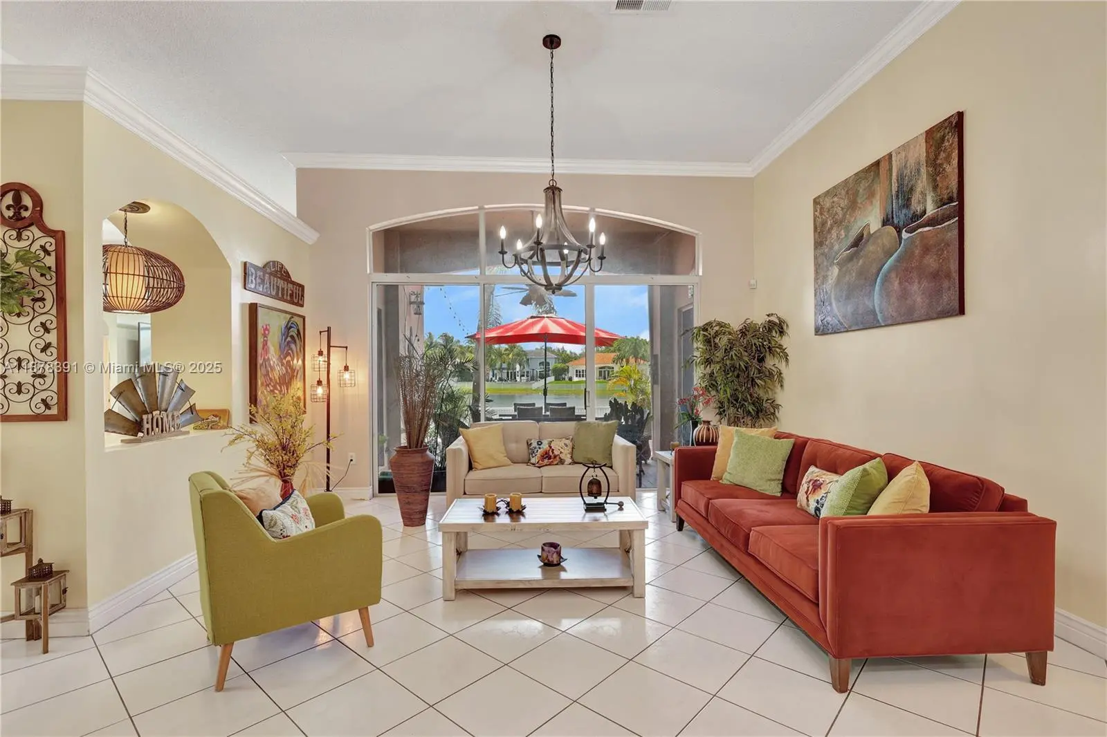 Absolutely gorgeous one-story home! This 4-bedroom, 2.5-bath residence offers breathtaking lake views and a spacious open-concept layout. Roof replaced in 2019. Features include tile flooring throughout, crown molding, accordion shutters, Bahama shutters, and a brand-new roof with a high-efficiency A/C. The gourmet island kitchen boasts granite countertops, perfect for entertaining. The oversized master suite includes a luxurious bath with a Jacuzzi tub. Additional highlights: sprinkler system, garage faucet with exit door, attic access, and a fully fenced yard. Enjoy the spectacular and serene views of the magical lake right from your backyard. Chandeliers and furniture are negotiable. Room for a pool. MOTIVATED SELLER