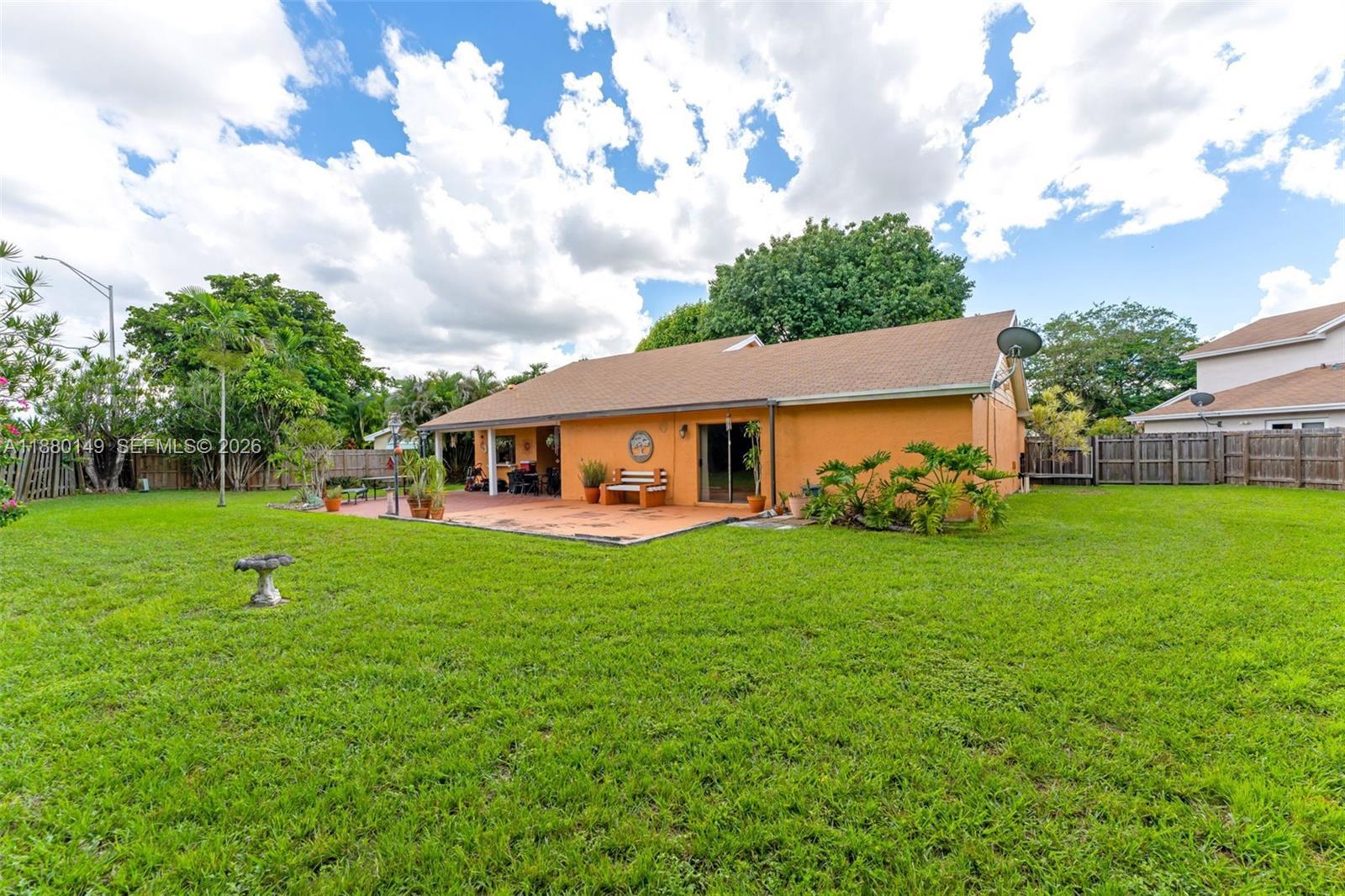Charming 4-bedroom, 2-bathroom home on an oversized 15,000 sq. ft. cul-de-sac lot in the highly desirable Lakes of the Meadow, one of the most family-friendly communities. Recently updated bathrooms and a brand-new AC unit provide comfort and peace of mind. The split-floor plan provides additional privacy, separating the master suite from the rest of the bedrooms. Additional highlights include a 2-car garage, and a separate laundry/utility room. The spacious yard is perfect for family fun and entertaining, with a covered terrace and plenty of space for a pool. The large front features a curved driveway with ample parking. Conveniently located near top-rated schools. THIS IS A RARE OPPORTUNITY TO OWN A PROPERTY IN A COMMUNITY WHERE HOMES ARE SELDOM AVAILABLE.