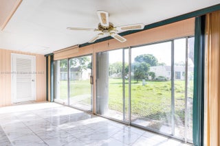 Welcome to this affordable rental Villa! Spacious, light, bright and tastefully renovated 2BR/2BA one story condo, featuring an open floor plan, light-filled layout with modern finishes throughout. The kitchen boasts white cabinetry, granite countertops, and updated lighting, while the bathroom has been tastefully remodeled with a walk-in shower. Additional upgrades include new tile flooring, accordion shutters, and a convenient laundry room inside the unit. Located in a well-maintained community offering fantastic amenities—clubhouse, pool, library, and gym—One Resident must be 55+ years old.
