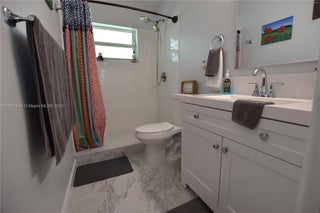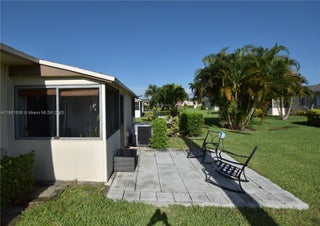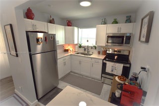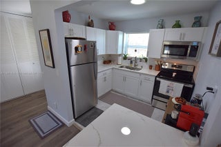 This unit is sure to impress! Fully updated with modern kitchen, bathrooms, and flooring, plus an AC unit that's less than a year old. All openings feature impact glass, including the slider. The open kitchen boasts a sleek island set off to the side. Enjoy the enclosed patio and a second paved patio just outside. There's also a full pantry, a linen closet, and an extra storage closet on the patio.
