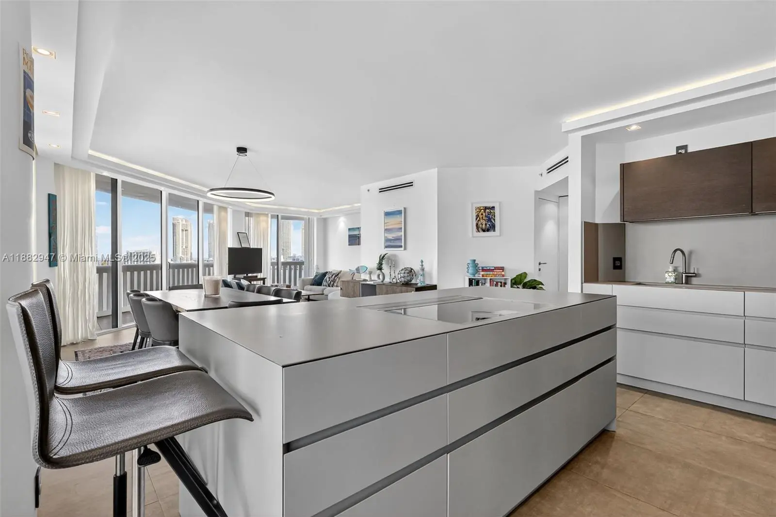 Stunning northeast corner wraparound residence with breathtaking Intracoastal and ocean views. Completely remodeled from A to Z with impact glass windows throughout. Permitted to create a true 3rd bedroom. Features an open ModulNova European kitchen with two-tone lacquer cabinetry and Gaggenau/Thermador/Miele appliances, including wine fridge. Cement-stone porcelain floors (2x4’), Legrand electrical switches, electric shades, and Fantini bath fixtures. Oversized master shower with rain system. Custom San Giacomo closets complete this luxurious, move-in-ready home. Experience the exclusive Williams Island lifestyle—resort-style amenities include a world-class spa, fitness center, marina, tennis & pickleball, fine dining, and on-demand shuttle service amid lush tropical beauty.