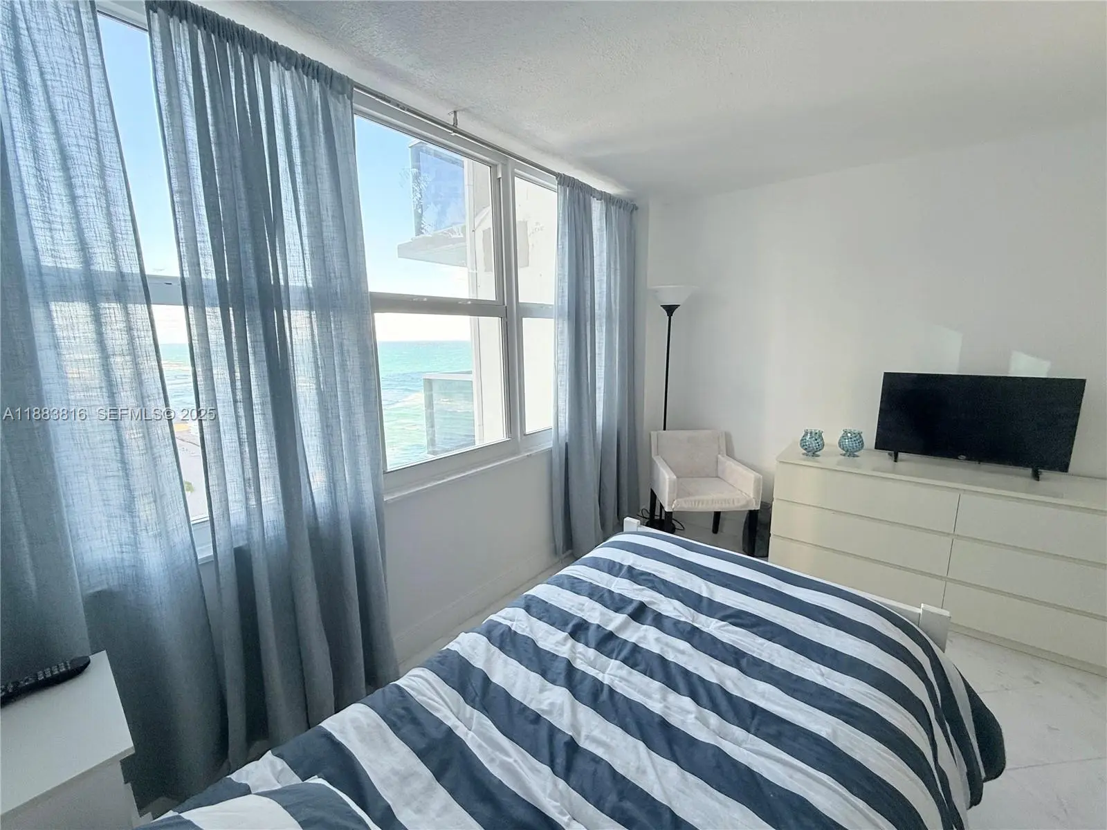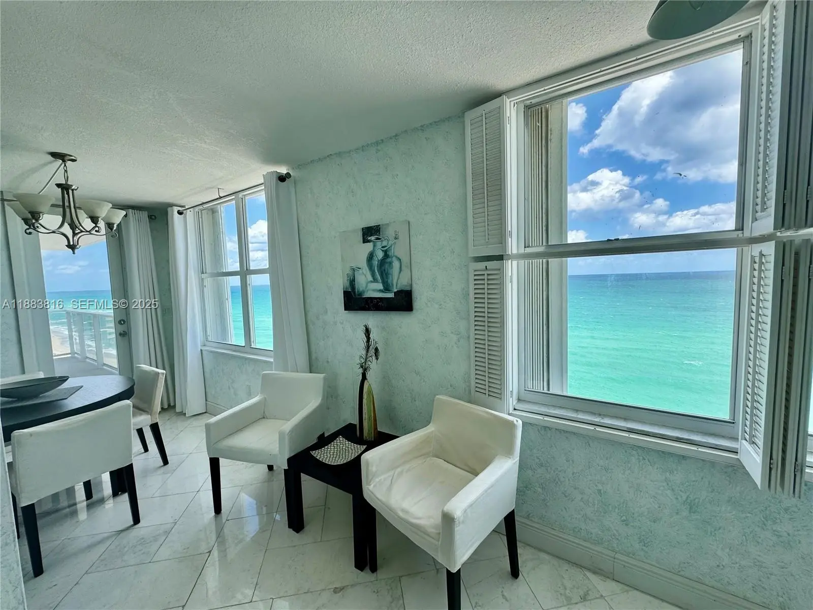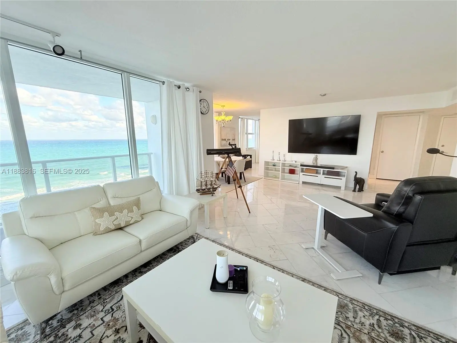 Spectacular 2 bed/2 bath+ Den that has queen size sofa bed and office, with ocean views - desired corner "04" unit in south tower - incredible views from the whole unit, including intercoastal view from the wrap-around balcony to the east and north. Separate shower, marbled and mirrored master bath with a tub - fully furnished - fully tiled - 1 garage parking covered and assigned + 1 garage parking open garage across street - full amenity building with valet parking, beach service, gym, 2 pools, restaurant, beauty salon, sauna, billiards and much more. 6 months rent minimum.