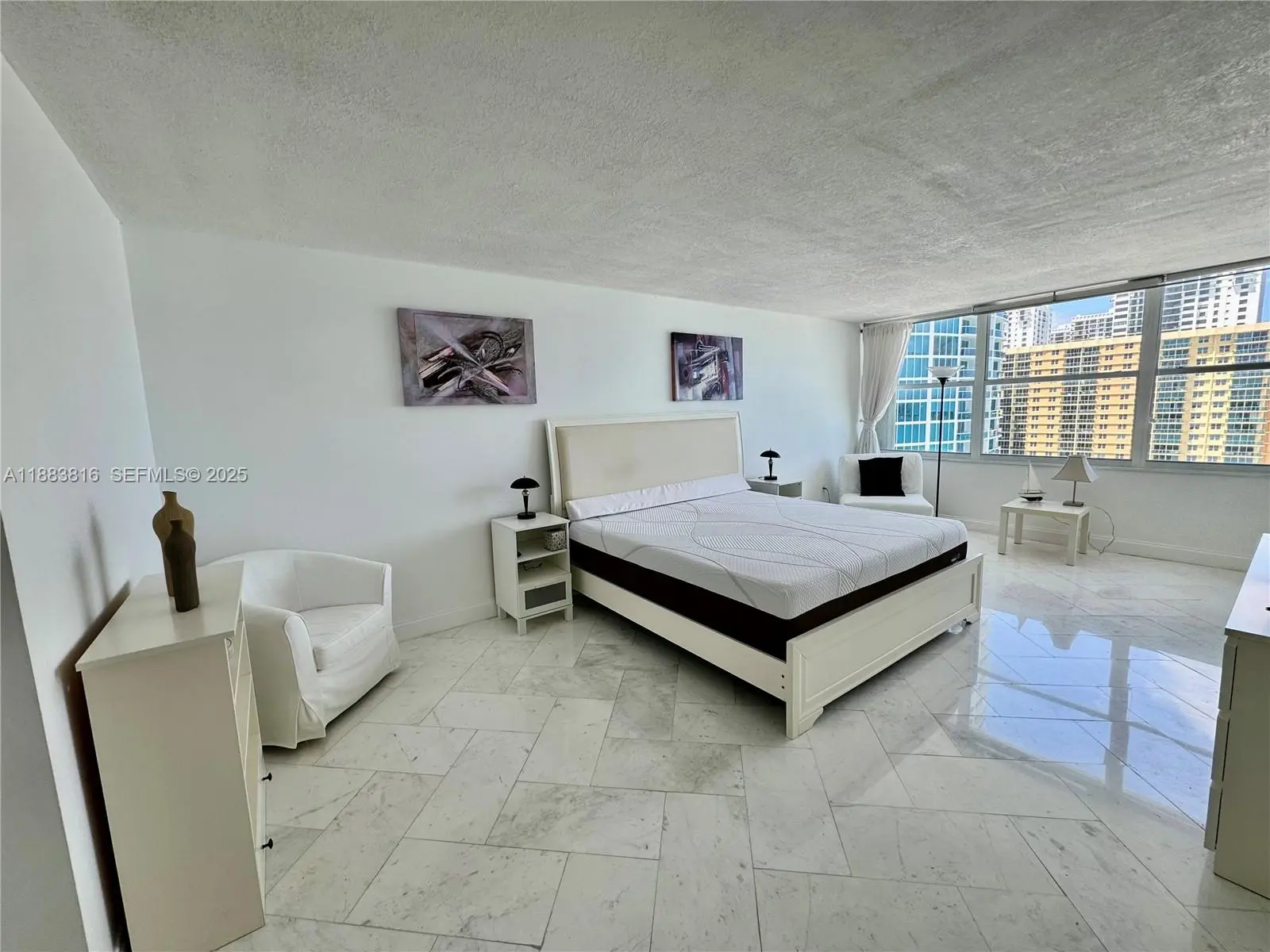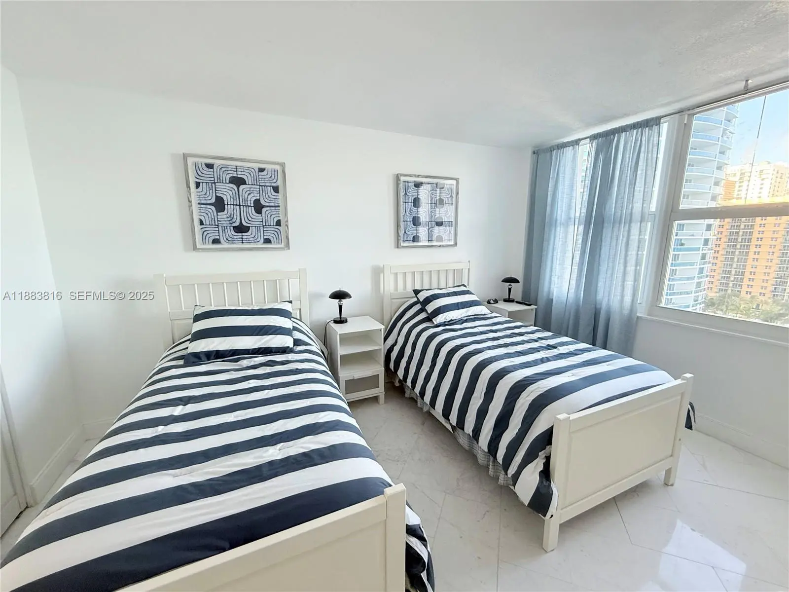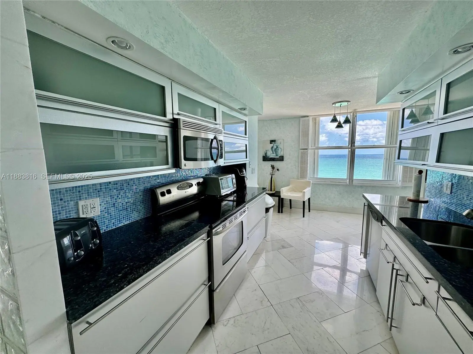 Spectacular 2 bed/2 bath+ Den that has queen size sofa bed and office, with ocean views - desired corner "04" unit in south tower - incredible views from the whole unit, including intercoastal view from the wrap-around balcony to the east and north. Separate shower, marbled and mirrored master bath with a tub - fully furnished - fully tiled - 1 garage parking covered and assigned + 1 garage parking open garage across street - full amenity building with valet parking, beach service, gym, 2 pools, restaurant, beauty salon, sauna, billiards and much more. 6 months rent minimum.
