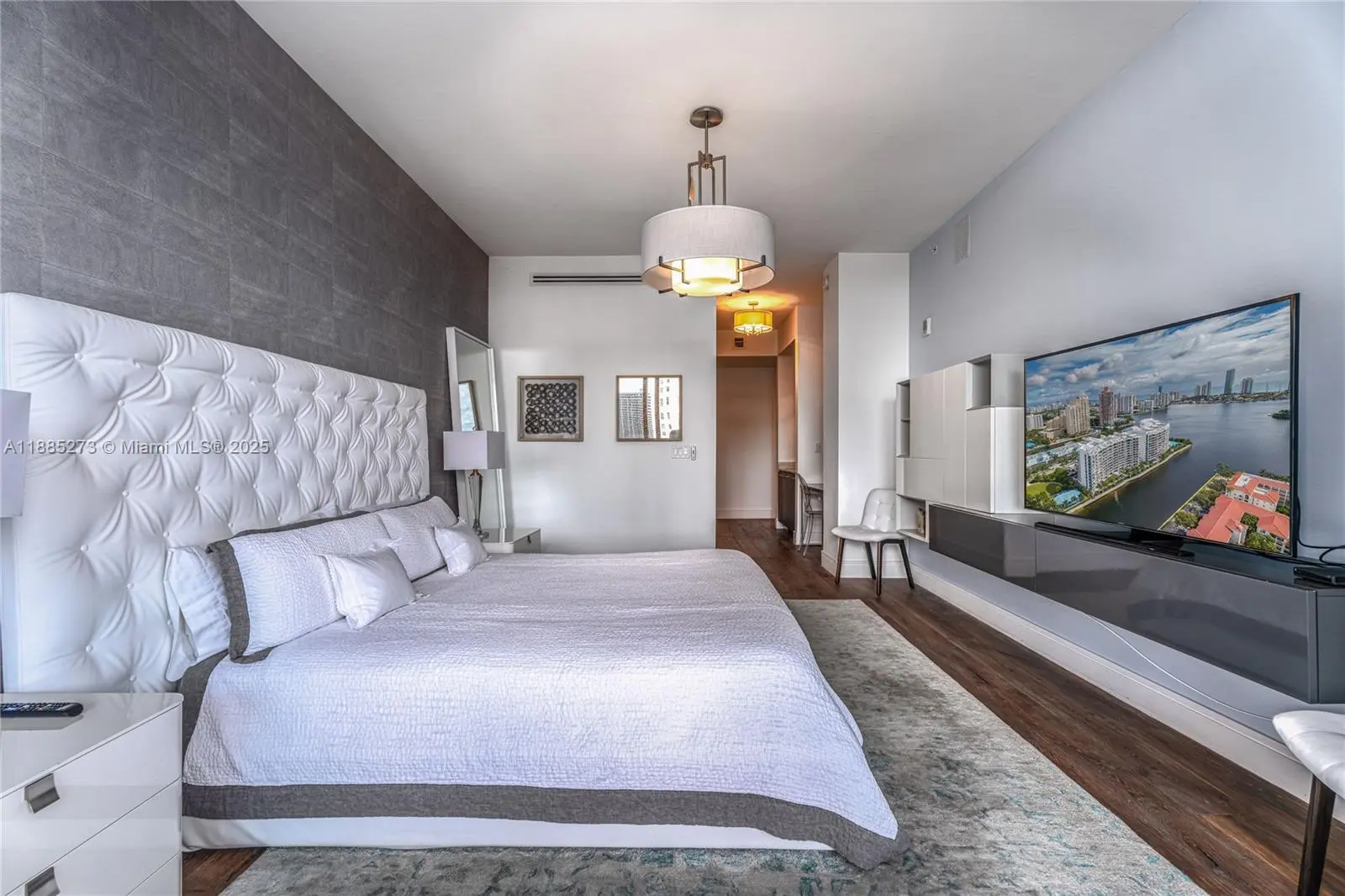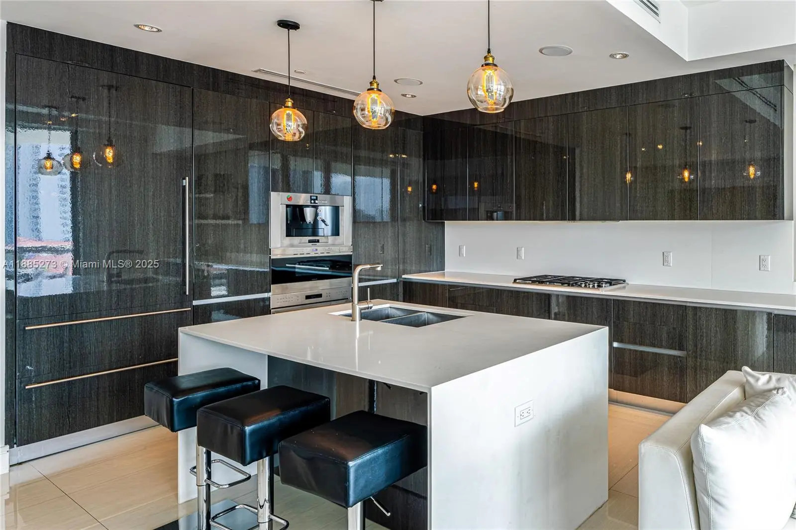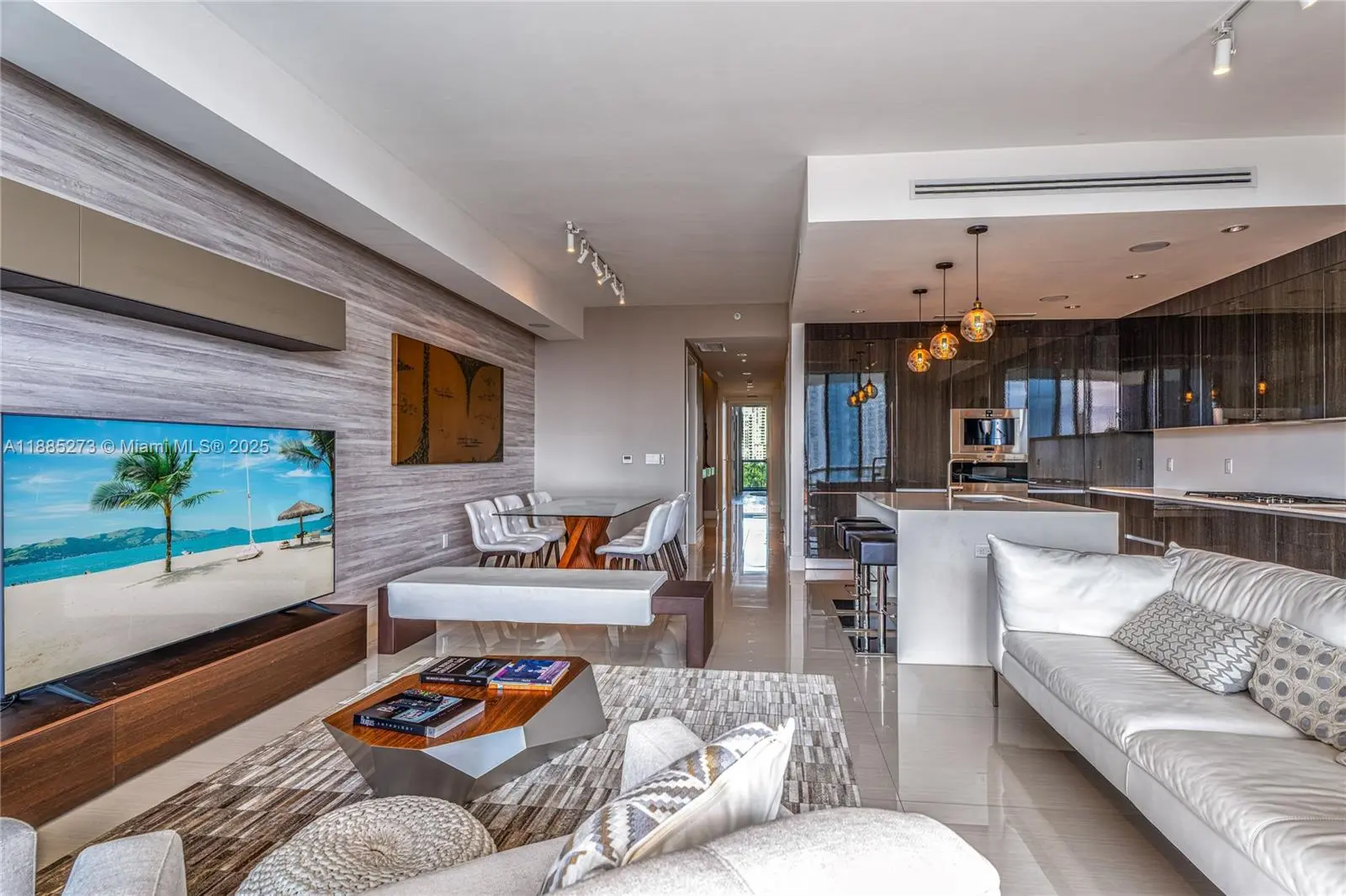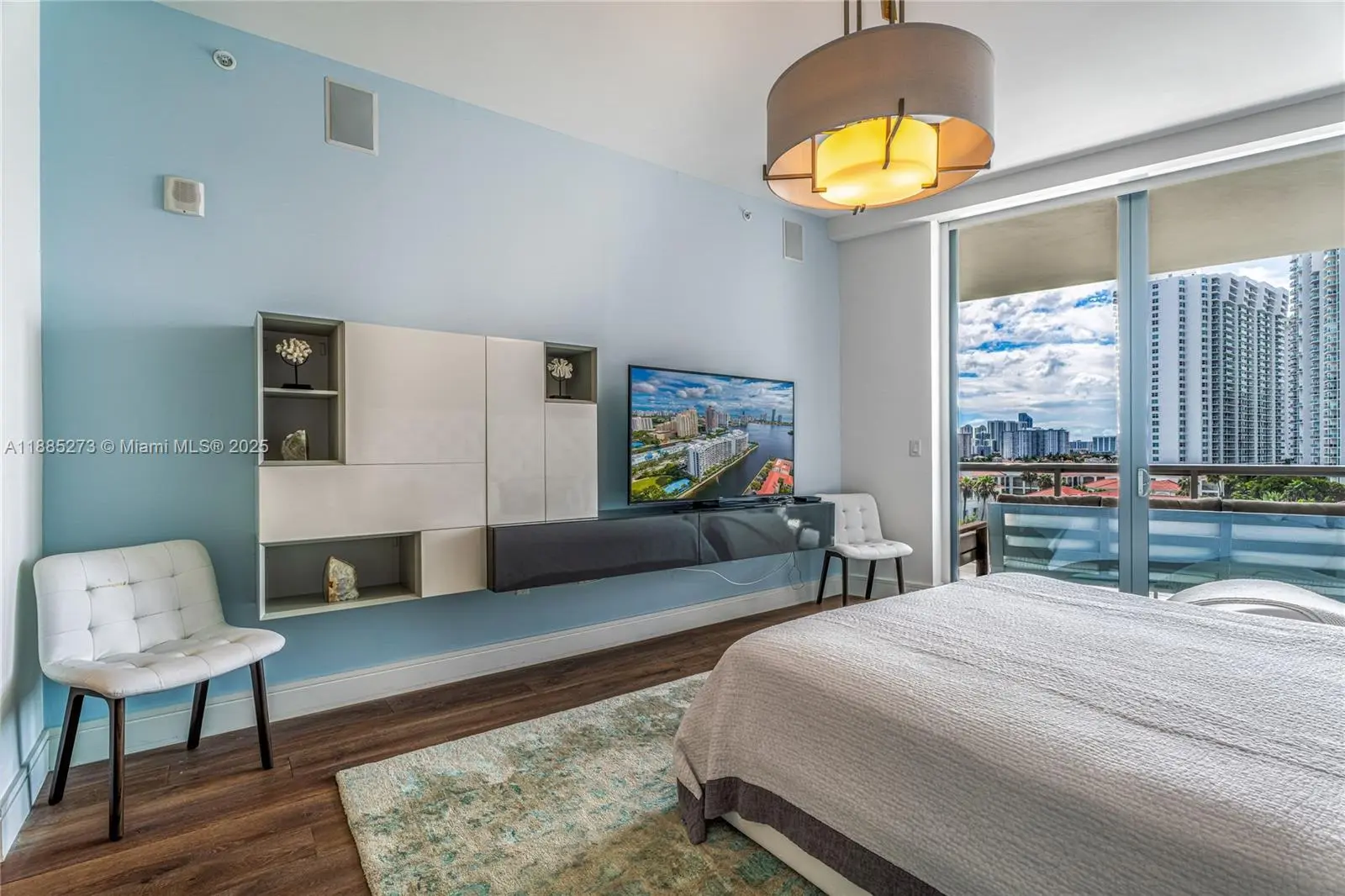 This elegant fully furnished 3-bedroom plus den, 4.5-bath residence at Echo Aventura offers 2,238 SqFt of living space. It includes two parking spaces and spacious terraces with a summer kitchen and BBQ, perfect for entertaining. The master suite has a minibar with fridge, and the kitchen comes with Sub-Zero appliances, wine cooler, coffee machine, industrial range, and built-in ovens. The residence is fully equipped with designer furniture, TVs, and smart home technology. Enjoy a balcony off the bedrooms with north views, and another balcony from the master and living areas with beautiful southern views of the Intracoastal. Ideally located close to Aventura Mall, fine dining, and Sunny Isles Beach.