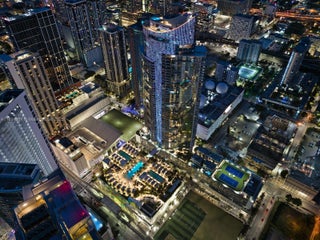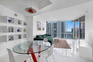 Welcome to Residence 4403 at Paramount Miami Worldcenter, home to Miami’s largest amenity collection. Resort style living on the desirable 44th floor with direct bay views and sunlit interiors framed by floor to ceiling glass. An open floor plan places the kitchen and waterfall edge island facing the living area for effortless entertaining, with a split bedroom layout and a versatile den. Finishes include top of the line appliances, custom built out closets in both bedrooms, and a primary bath with dual vanity sinks, bathtub, and separate shower. A private elevator opens to your own foyer. Additional features include 10 ft ceilings, a bay facing balcony, laundry room, and storage throughout. Premier parking with assigned spaces next to the elevator plus one valet space.