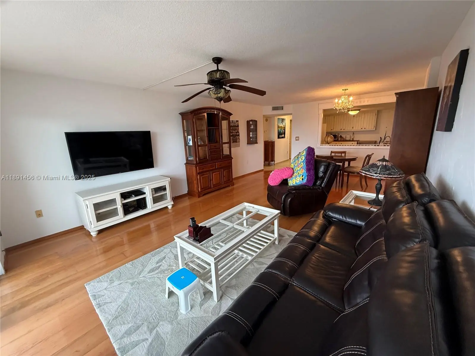 Spacious 1 bedroom, 1.5 bath residence featuring wood flooring in the living area and tile flooring throughout. Enjoy a private balcony with wide city and sunset views. The building offers 24/7 front desk security, two pools, two tennis courts, fitness centers, a billiards room, and bicycle storage. Centrally located. Many shops, dining options, and amenities within the City of Aventura. The A/C unit is approximately one year old.