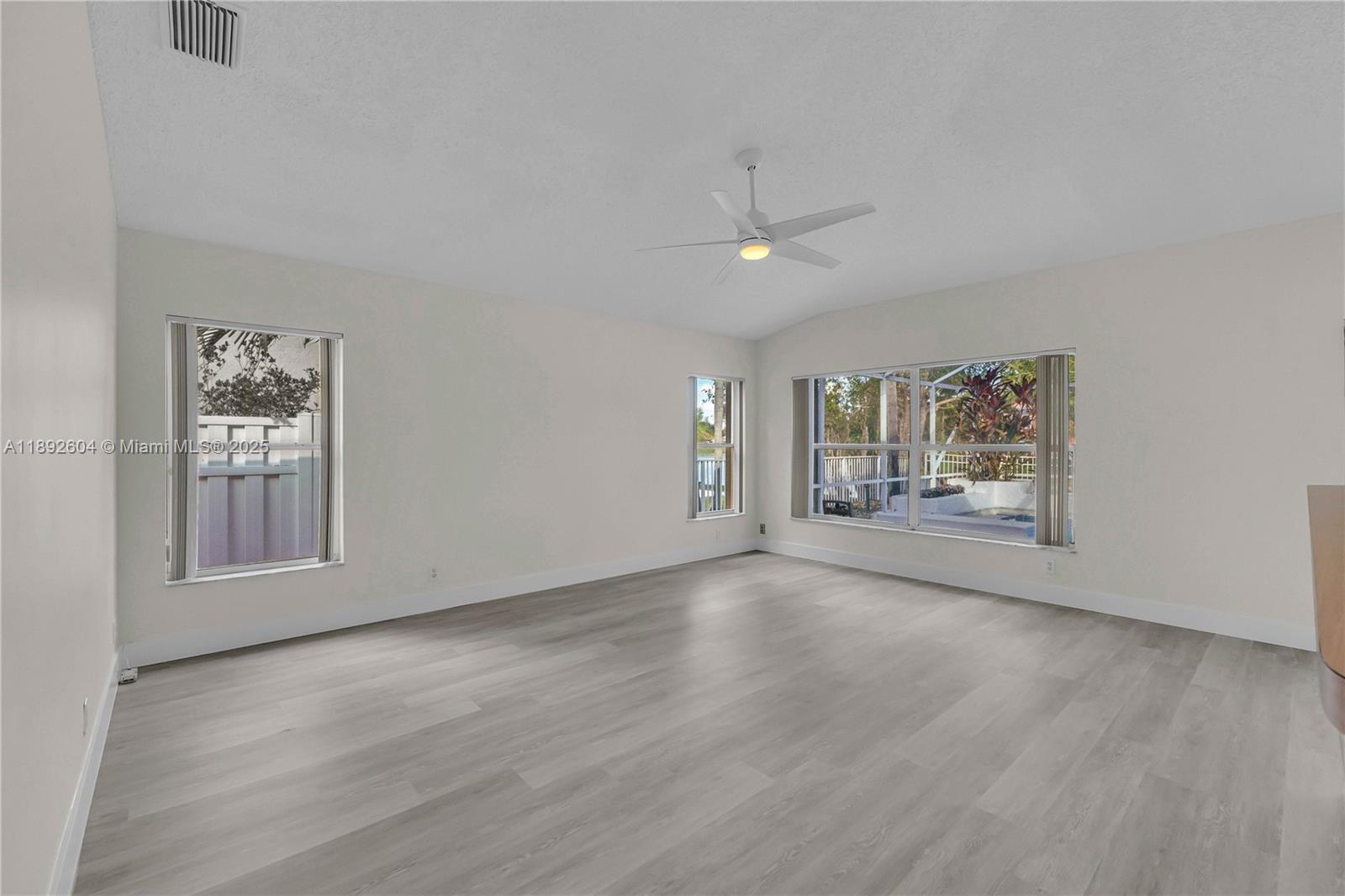 Original-owner 4BR/2.5BA lakefront pool home with amazing bones and endless potential! The entire interior has just been freshly repainted, and all original carpeting has been replaced with brand-new luxury plank flooring. Thoughtfully designed split-bedroom floor plan offers spacious living areas and a formal dining room/ flexible space that can easily be reimagined to fit your needs. Oversized primary bedroom features lake views and an alcove perfect for a sitting area or workspace. The beautifully updated pool overlooks a serene lake surrounded by mature landscaping, creating a private retreat. Located in a sought-after area near highways, shopping, a major sports/concert venue, and corporate parks, plus just minutes from a gorgeous park with a splash pad, basketball courts, sports fields, and more for the whole family to enjoy. Well cared for and ready for your personal touch, this home is the perfect canvas to make your own! Roof replaced in 2017. Accordion shutters included.