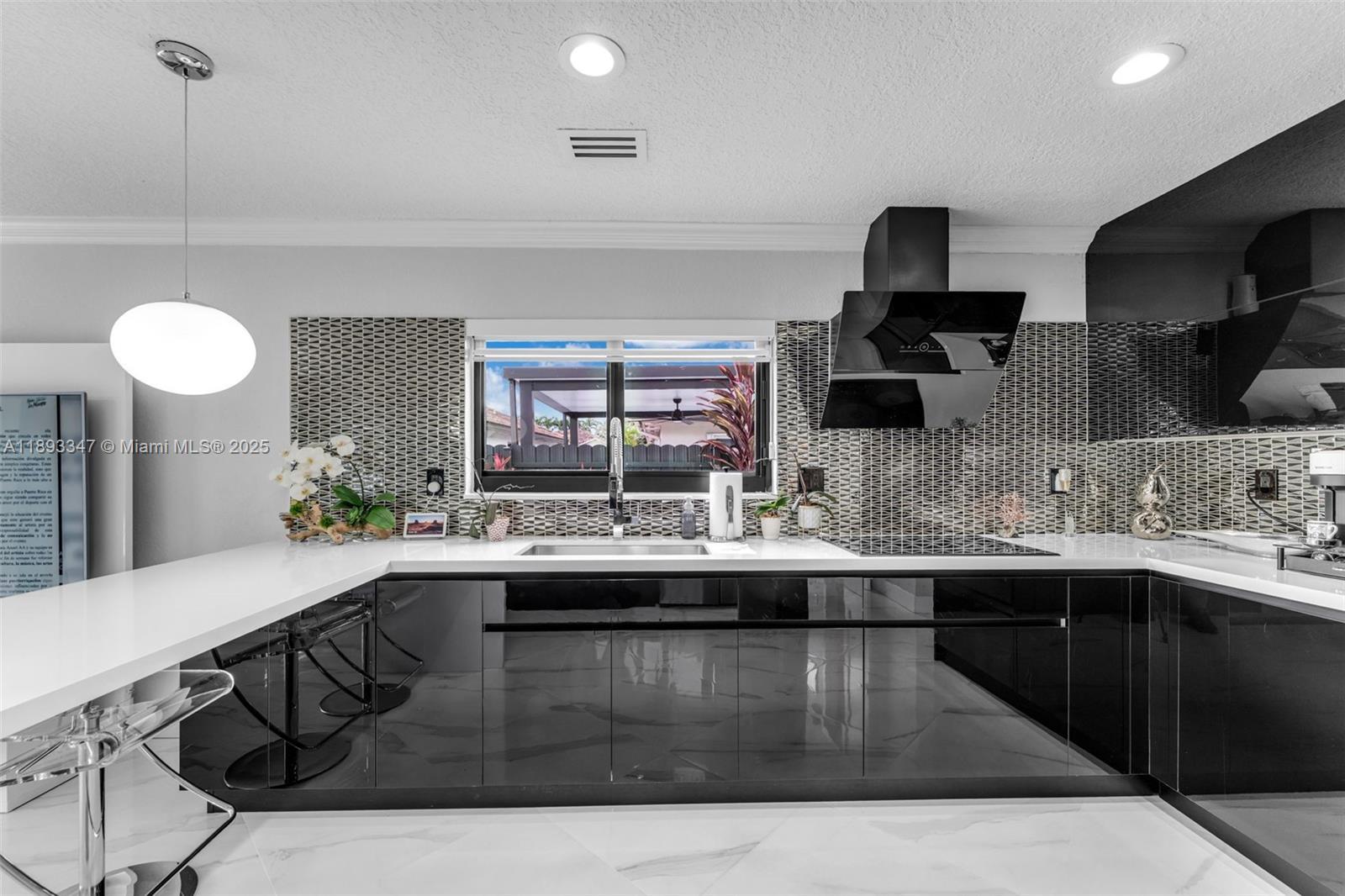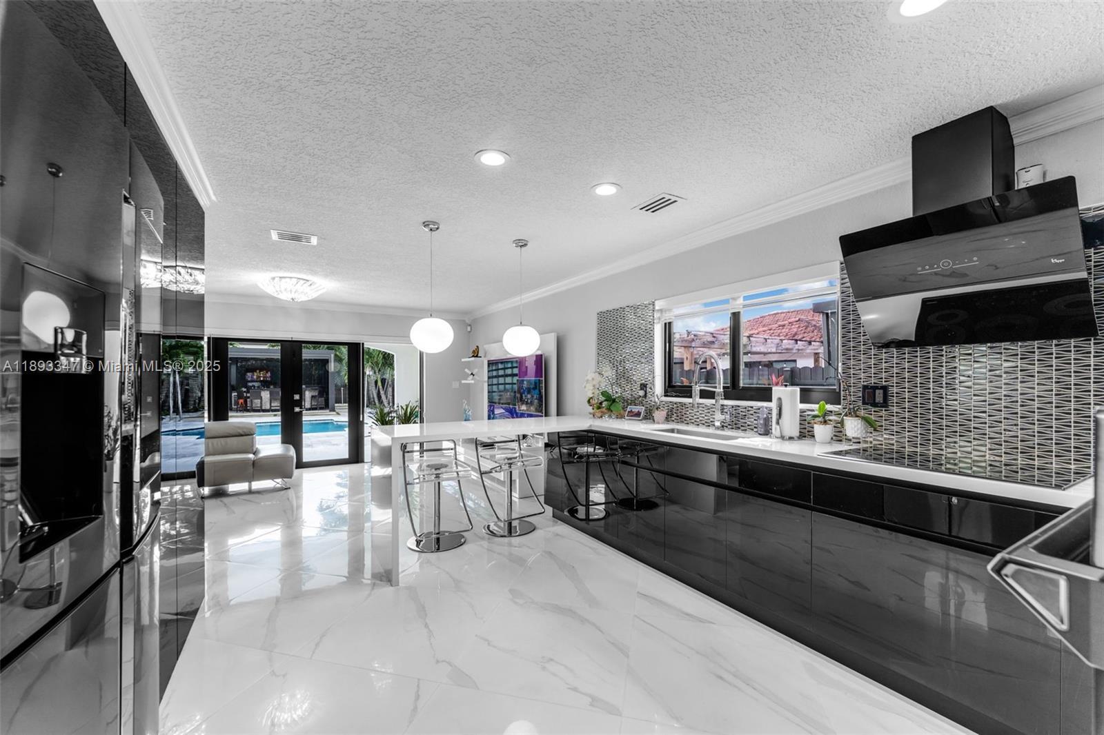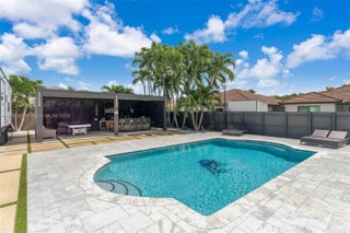 Spectacular corner residence masterfully remodeled with designer finishes throughout. This 4-bedroom, 3-bath sanctuary welcomes you with an open, light-filled layout, vaulted ceilings, and premium porcelain flooring. The gourmet kitchen, equipped with stainless steel appliances, flows seamlessly into formal dining and family rooms. Outside, your own private resort awaits — a 15 × 25 ft. pool, built-in BBQ, expansive patio, and lush landscaping offering privacy and resort living. Positioned on one of the largest lots in the community, the home also features impact doors, 2-car garage, custom lighting, and thoughtful craftsmanship in every detail. Ideally located near schools, shopping, and major thoroughfares. Easy to show — schedule your private tour today!