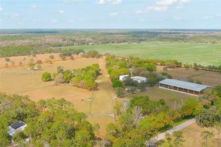 Equestrian facility with plenty of land (38+/- acres), a guest house, covered steel arena, 2 horse barns, storage buildings, covered equipment parking. 2-story, 3-bedroom, 1 ½ bathroom, with stone floors and granite countertops. The guest house is a 1-bedroom, 1-bath, stilt home, high and dry with a balcony and private entrance. 2000’ grass runway AIR STRIP, and a small hangar/carport. Engineered metal and concrete barns with utilities, a bathroom, an air-conditioned hay barn, multiple water wells on the property, septic and lift stations, drainage culverts, fenced and cross-fenced, pastures, and turnout. Barn office, tack room, feed room, hot walker. 20,000 sq ft 25’ high steel-covered riding arena, 2 separate horse barns, ready for your horses this year, here in Florida.