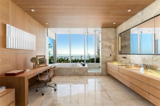 Soaring above Coconut Grove, this 11,810 SF penthouse at Grovenor House embodies the pinnacle of modern luxury. A private rooftop pool crowns this 6-bedroom, 5.3-bath residence, offering stunning 360° views of Biscayne Bay and the glittering Miami skyline. Designed for both elegance and ease, the home features tray ceilings, custom millwork, rich hardwood and black chalk marble floors, a 300+ bottle wine cellar, and a bespoke gourmet kitchen. Walls of glass open to a wraparound terrace, blurring the line between indoors and out. With a private elevator, rooftop summer kitchen with food lift, automated shades, and integrated smart home technology, this is elevated living at its finest.