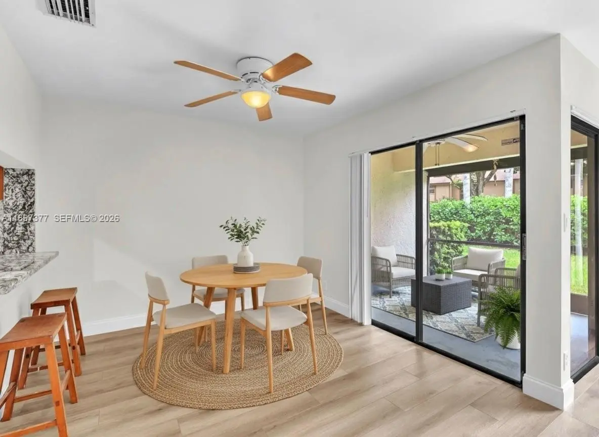 Beautifully updated 3BR/2.5BA townhouse with 1,547 sq ft in a desirable Coconut Creek community. The kitchen features rich wood cabinetry, granite counters and backsplash, stainless steel appliances, and luxury vinyl plank flooring throughout, opening to a bright living and dining area ideal for entertaining. Upstairs offers a spacious primary suite, plus brand-new, never-used shower tile in both bathrooms. Enjoy a screened patio perfect for relaxing or outdoor dining.