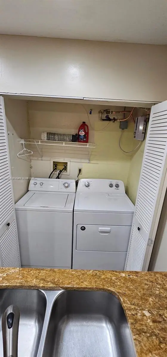 Discover this delightful 2-bedroom, 2-bath condominium perfectly situated in the vibrant center of Oakland Park. Start your day with coffee or unwind in the evening on your private balcony, an inviting space for both relaxation and entertaining guests. The interior showcases a contemporary kitchen equipped with granite countertops, elegant wood cabinetry, and the convenience of an in-unit washer and dryer. Additional highlights include a newer A/C system, a spacious walk-in closet, and window shutters throughout, even on the sliding doors leading to the balcony. Offering a harmonious balance of style, comfort, and practicality in one of the area’s most sought-after locations—this is an opportunity you won’t want to miss!